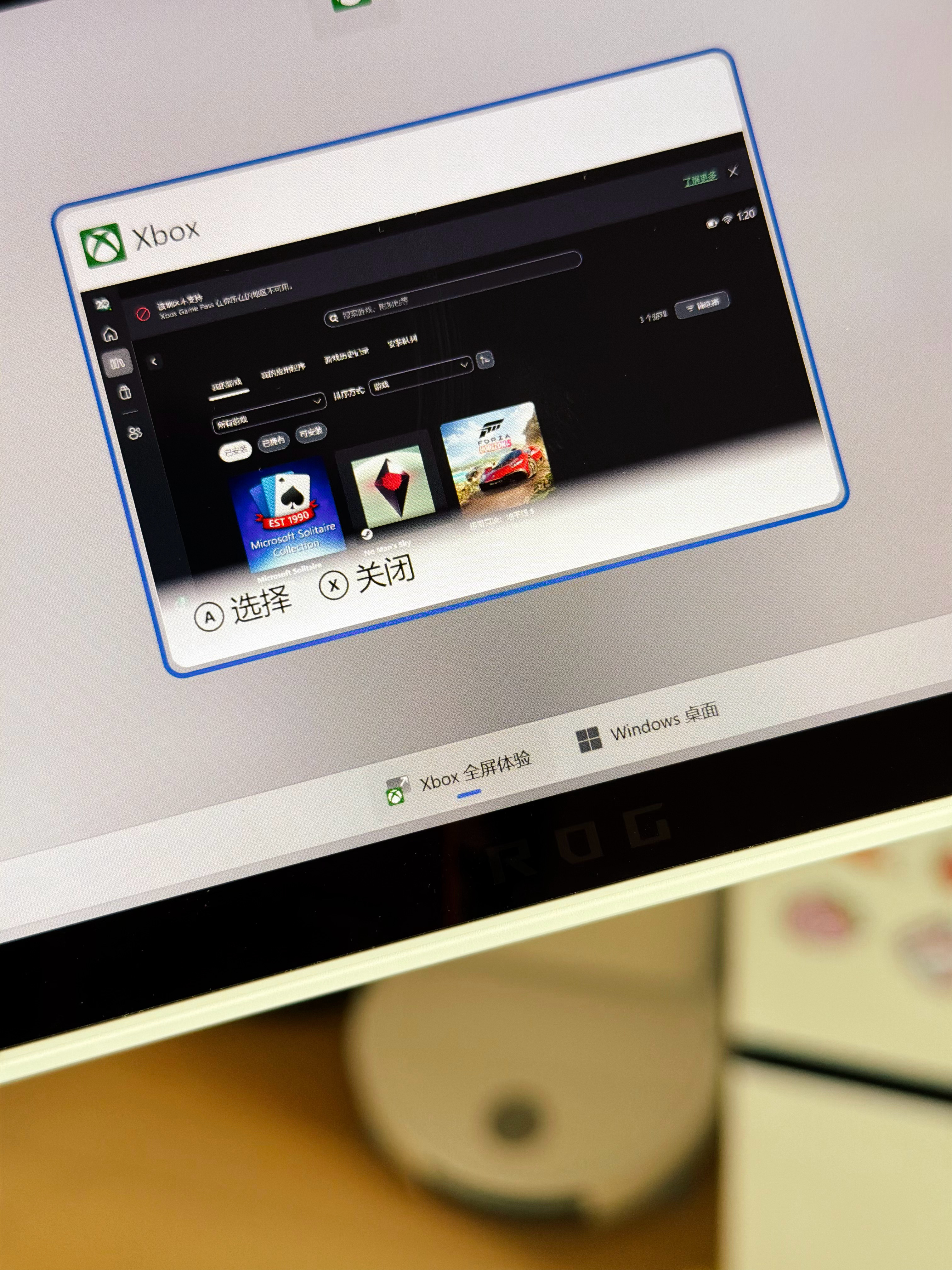 最近在玩 ROG XBOX ALLY,这游戏机手感是很好,我觉得可能是手感最好的游戏掌机了吧。大手柄握起来贼舒服,就好像在拿着 XBOX 手柄一样,比 Switch 高明太多了但是机器性能也是真弱,玩起来卡卡的,甚至设置界面都感觉反应慢半拍。除了 XBOX 桌面,甚至还能进到 Windows 桌面,连个鼠标键盘能当个小主机用性能要是再强点就好了~~