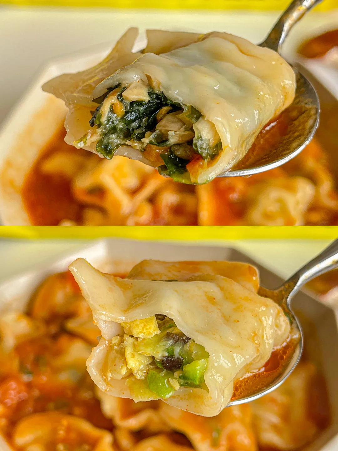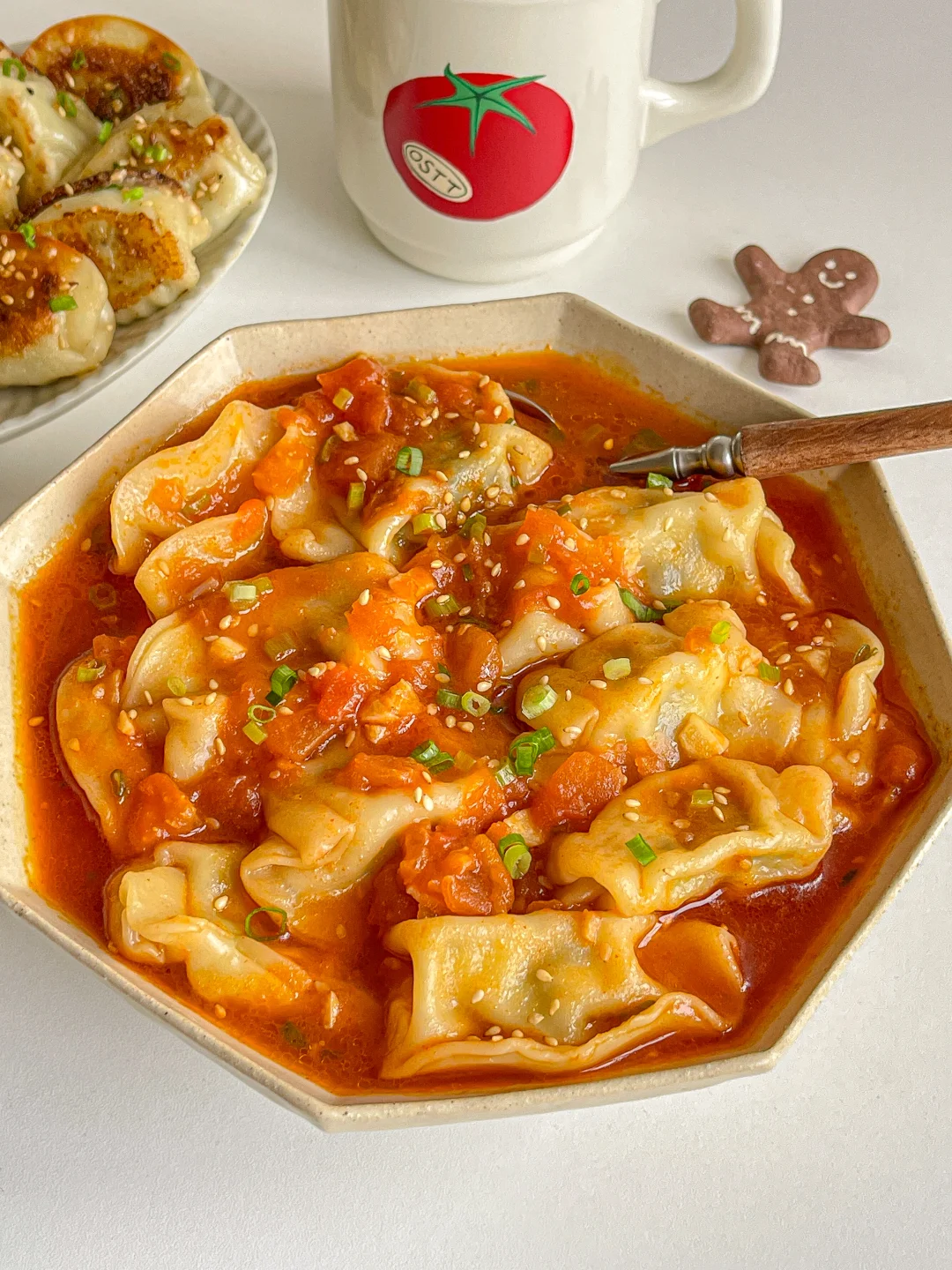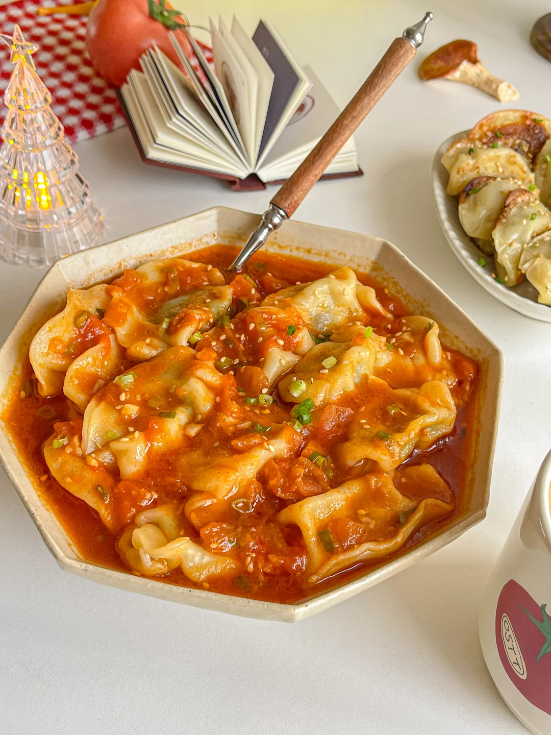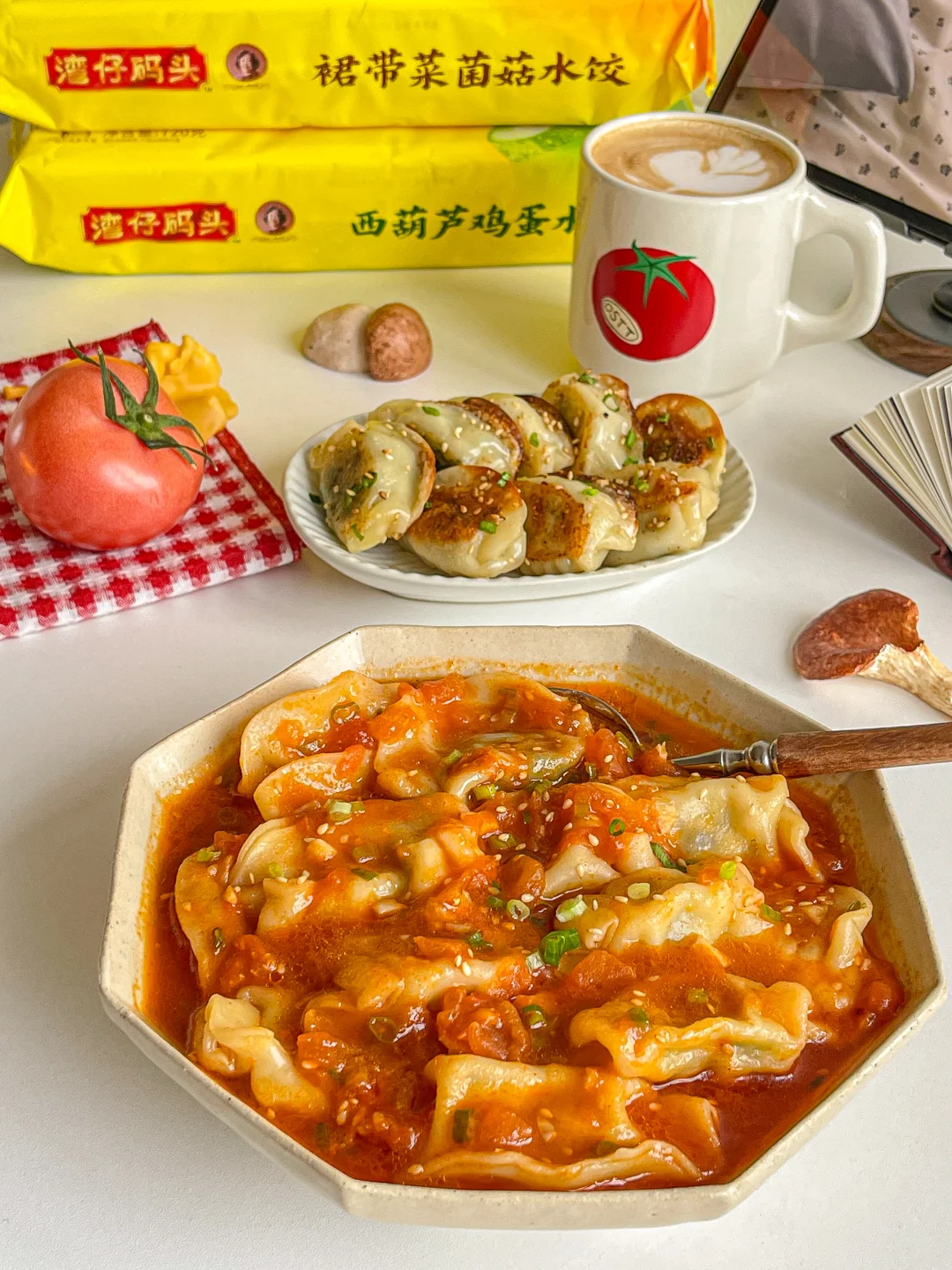 素水饺吸满了番茄汤汁 比肉还好吃💯