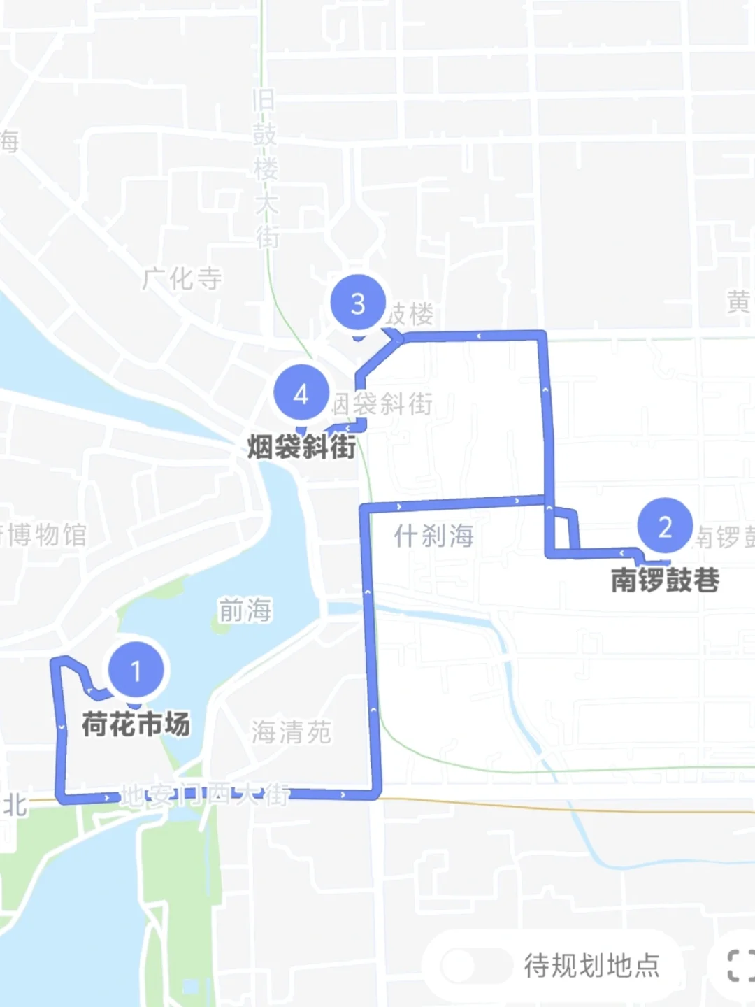 北海公园➡️什刹海➡️荷花市场➡️烟袋斜街➡️鼓楼
