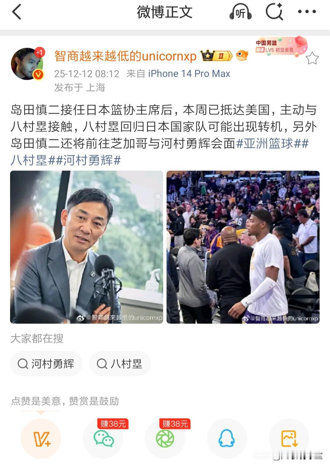 郭士强的男篮帅位岌岌可危!男篮世预赛2月份窗口期,中国男篮对日本可能还会输。 据欧洲篮球和NBA选秀专家王健透露,日本篮协主席岛田慎二于本周抵达美国,与八村塁和河村勇辉会面,希望他们能回归国家队,代表日本男篮征践世预赛,一旦日本男篮集齐八村塁、河村勇辉和渡边雄太等球员,对中国男篮而言是个不利因素,如果中国男篮输完韩国再输日本的话,郭指导主帅的位置肯定不保!