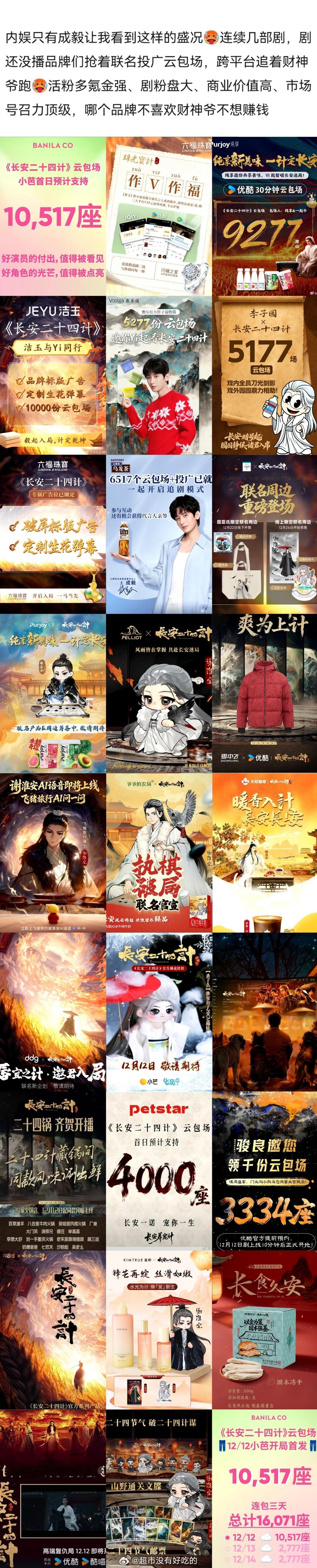 最厉害之处在于长安二十四计是纯原创剧本无ip无前作,开局10广,完全靠成毅本人了