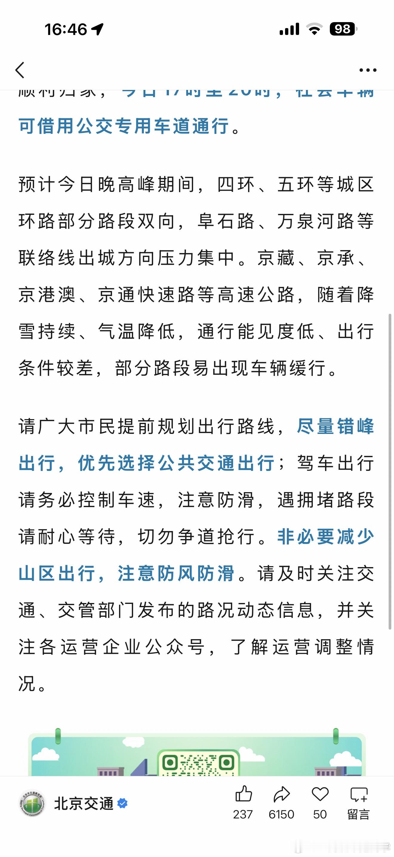 今晚,公交道可以正常行驶点赞北京交警的人性执法!但各位通勤一定注意安全!雪天,慢行,不要用辅助驾驶!
