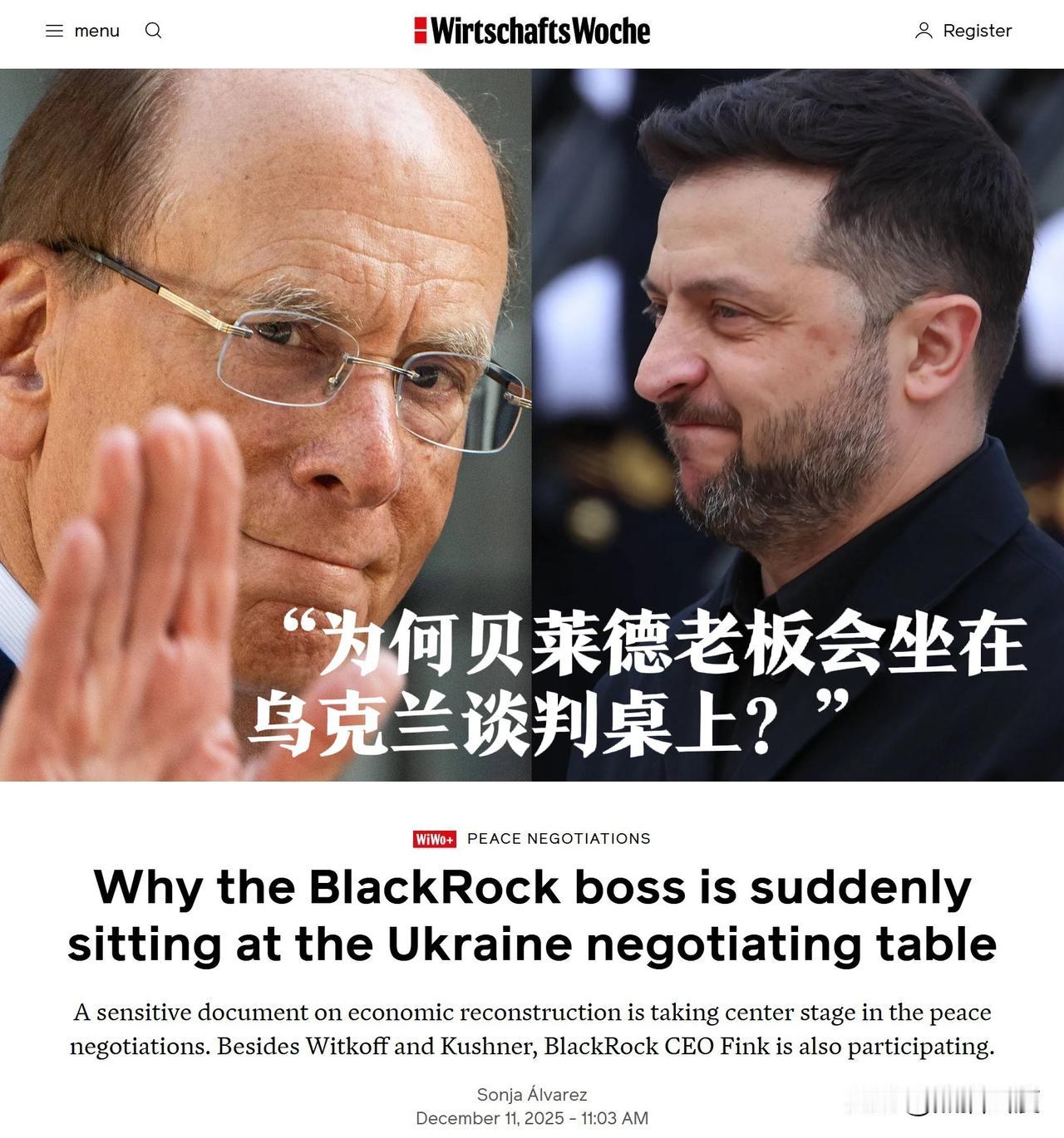 美国调停俄乌为了争取和平?——原来全是生意而已。 已经提前两年在乌克兰资产上布局的全球最大资管机构贝莱德,其首席执行官拉里·芬克目前正与维特科夫(美国俄乌问题特使,地产大亨)和贾库什纳(特朗普女婿)一起,直接参与乌克兰谈判——那是4000亿规模一国资产的贱卖。 如今的美国,不再打代理人战争,而是悄悄变成华尔街金融大鳄们和特朗普核心圈子亲信的生意之道。两个生意人,直接可以插手一个战争地区的外交谈判,现在还加入了一名金融大鳄在谈判桌上,桌下英法德估计眼睛都看直了。