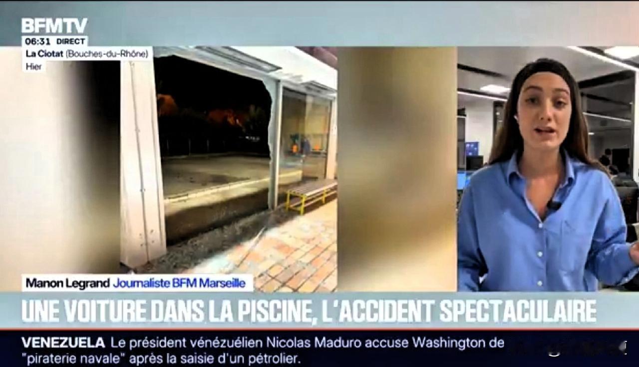 法国的游泳池里冲入辆小汽车,而且游泳池是在室内的。 一辆汽车因驾驶失误撞入拉西奥塔市立游泳池的主泳池。司机是38岁的法国女性,显然误将刹车当成了油门,撞上围栏后又撞破了游泳馆的玻璃门,最终一路和她5岁的女儿连人带车落入水中。 现场两名救生员还不得不跳入水中救起母女二人,明显母女二人虽安然无恙,但受到了不小惊吓。 该事件也带来了一些公益性的知识宣传:比如车落入水中如何自救(或者被人救)。