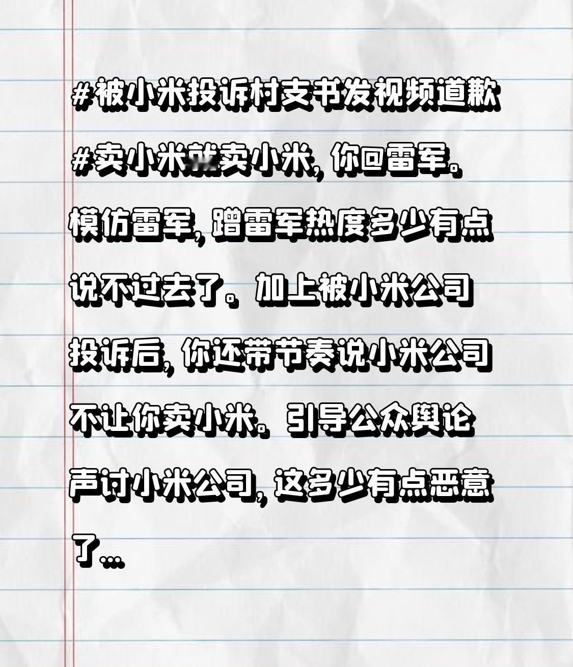 加上被小米公司投诉后,你还带节奏说小米公司不让你卖小米。引导公众舆论声讨小米公司,这多少有点恶意了。 可以说,这支书从一开始就明白自己在做什么。所以有这样的结果不奇怪!你认为小米是家什么公司