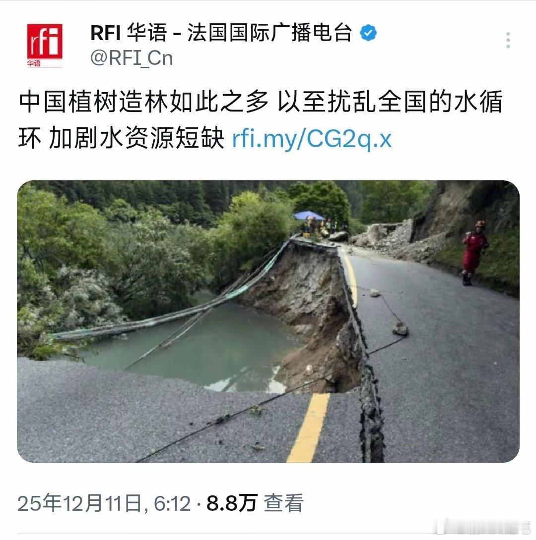 法国人也加入BBC那种不要脸了,说中国植树造林如此之多,以至扰乱全国的水循环 加剧水资源短缺。这货简直就是鸡蛋挑骨头,中国种树太多也有问题了?