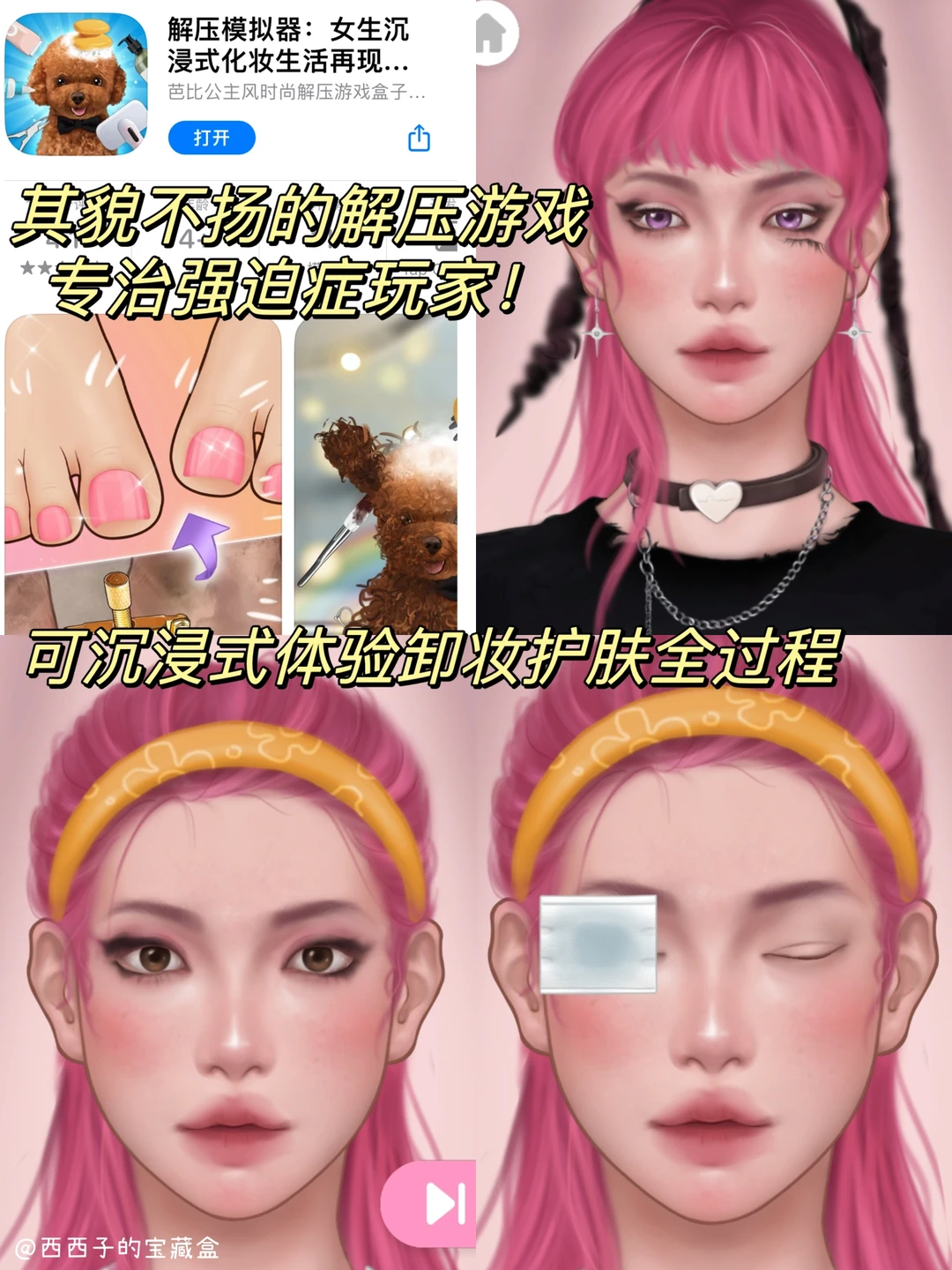 游戏👉解压模拟器 支持👉安卓/iOS · [黄金薯R]麻麻咪耶~这个游戏过程真的暗爽到抠脚🦶! 🧼主要玩法是把一些脏脏乱乱、杂乱无章的东西都整理干净! [斜眼R]比如给皮肤卸妆做护理、改造流浪汉、梳洗修剪满是泥巴的流浪狗、清洗黑黑的地毯、修脚采耳等等... 🎧玩的过程中配合游戏自带滴声音、震感,沉浸式体验感拉满~ · [捂脸R]有些脏乱程度,非强迫症玩家看了都忍不了!! [暗中观察R]但是谁懂?就是修理清洁这些脏脏乱乱的过程,让人感到无比解压! [集美R]想爽一下头皮的,冲就完事了~
