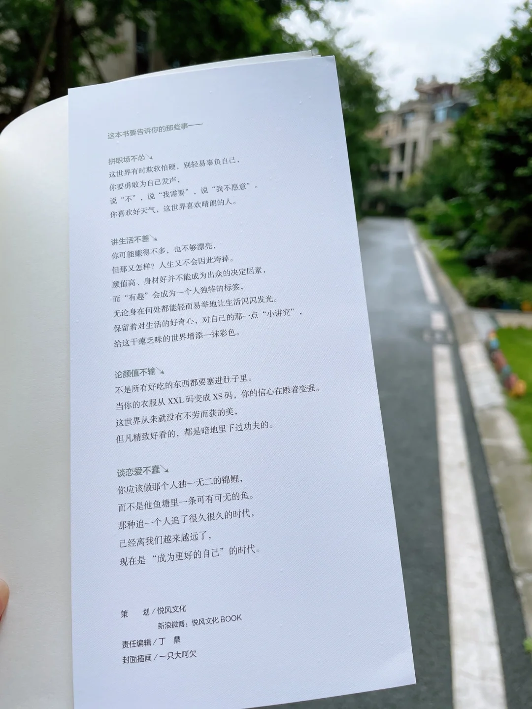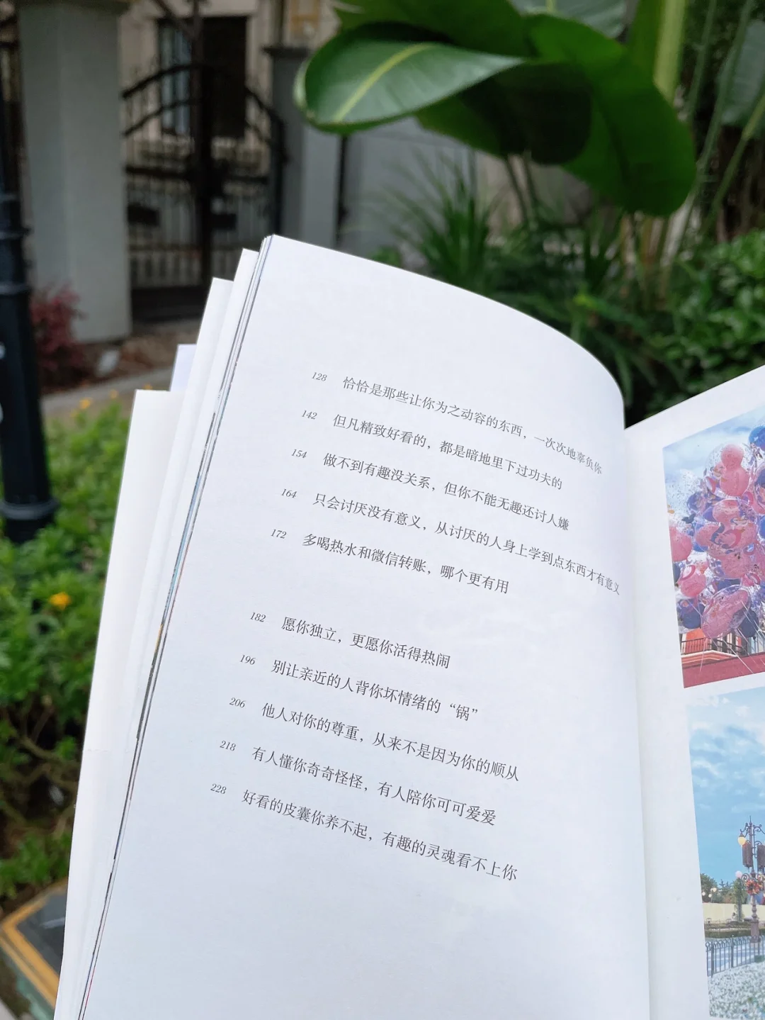 🌻一翻开书真的就有一种特别喜欢的感觉,书本前奏是作者的日常随拍与配文,真的像一位朋友在和你聊天的感觉,非常真实及真诚,文本内容也是以分享自己以及朋友和身边人的故事来展开,亲情、爱情、生活、友情、职场、人性......没有猛灌鸡汤没有大道理小理论,亲切到像是自己在经历这些,当然你肯定会从中找到和自己很相似甚至一摸一样的故事,上一本和这一本我都找到了