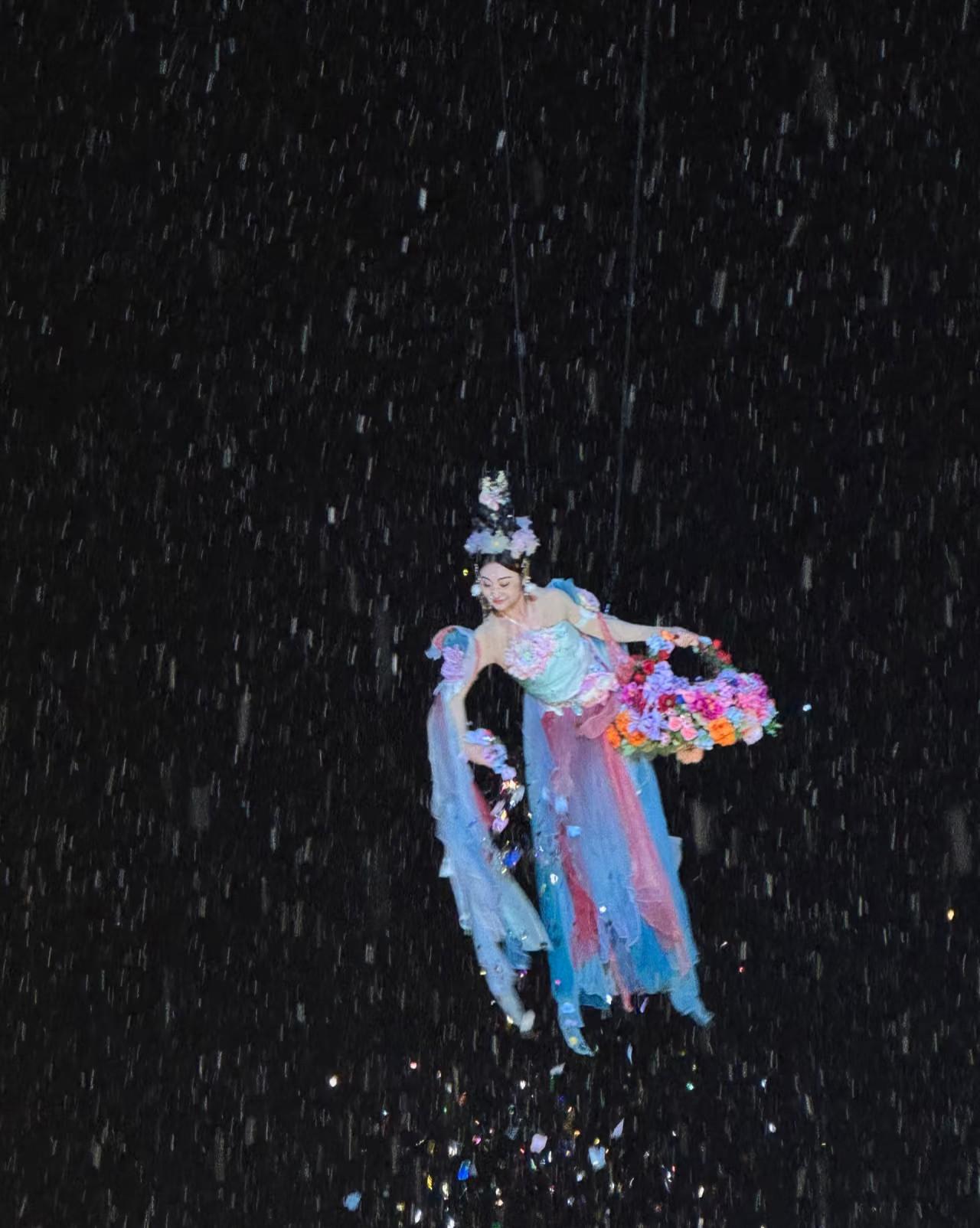 12月12日,河南大部地区都下起了大雪,可这根本阻挡不住洛邑古城演职人员在漫天飞雪中展示“天女散花”这一经典节目。现场观众都分不清哪些是雪、哪些是花了,面对这如诗如画的一幕,现场观众也是爆出一阵阵的惊呼…… 就是苦了这位美女小姐姐了,在零下4-5的天气下,穿这么单薄的服装,飘在空中这么长时间,真的是美丽冻人啊!