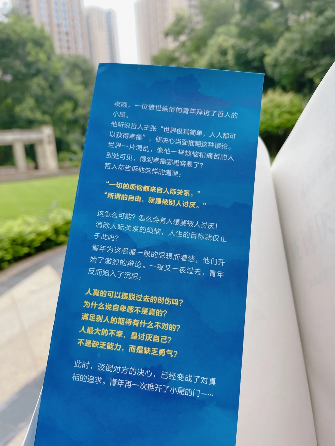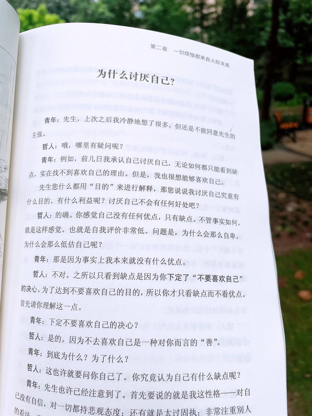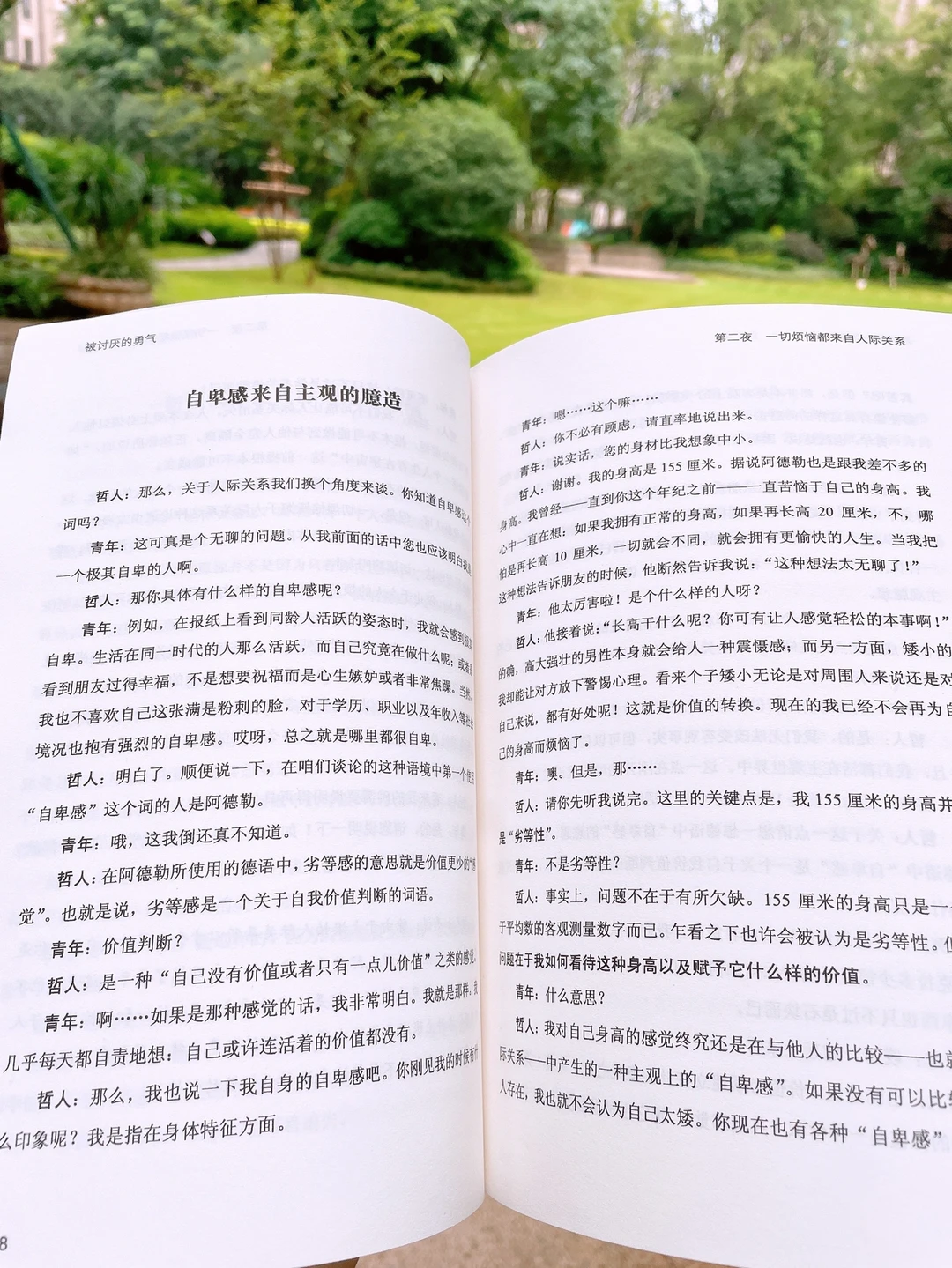看书名还以为是一本鸡汤书,但才阅读几页就有一种“不一般”的感觉,书里篇章是以一位青年与一位哲人对话的模式构建,本书将原本高深难懂的心理学和哲学问题结合贴近生活的例子并用浅显易懂的语言娓娓道来,就像自己与他们同在书房旁听他们谈话的感觉,看着真的停不下来,很多篇章内容都能看到自己的一些影子,原来都可以换一种方式去思考,真的受益匪浅,不得不说真的是一本极其好的书(内容远远超越普通的书名😄)每个人都会有自卑感,都可以阅读,小伙伴们买它买它👉📖