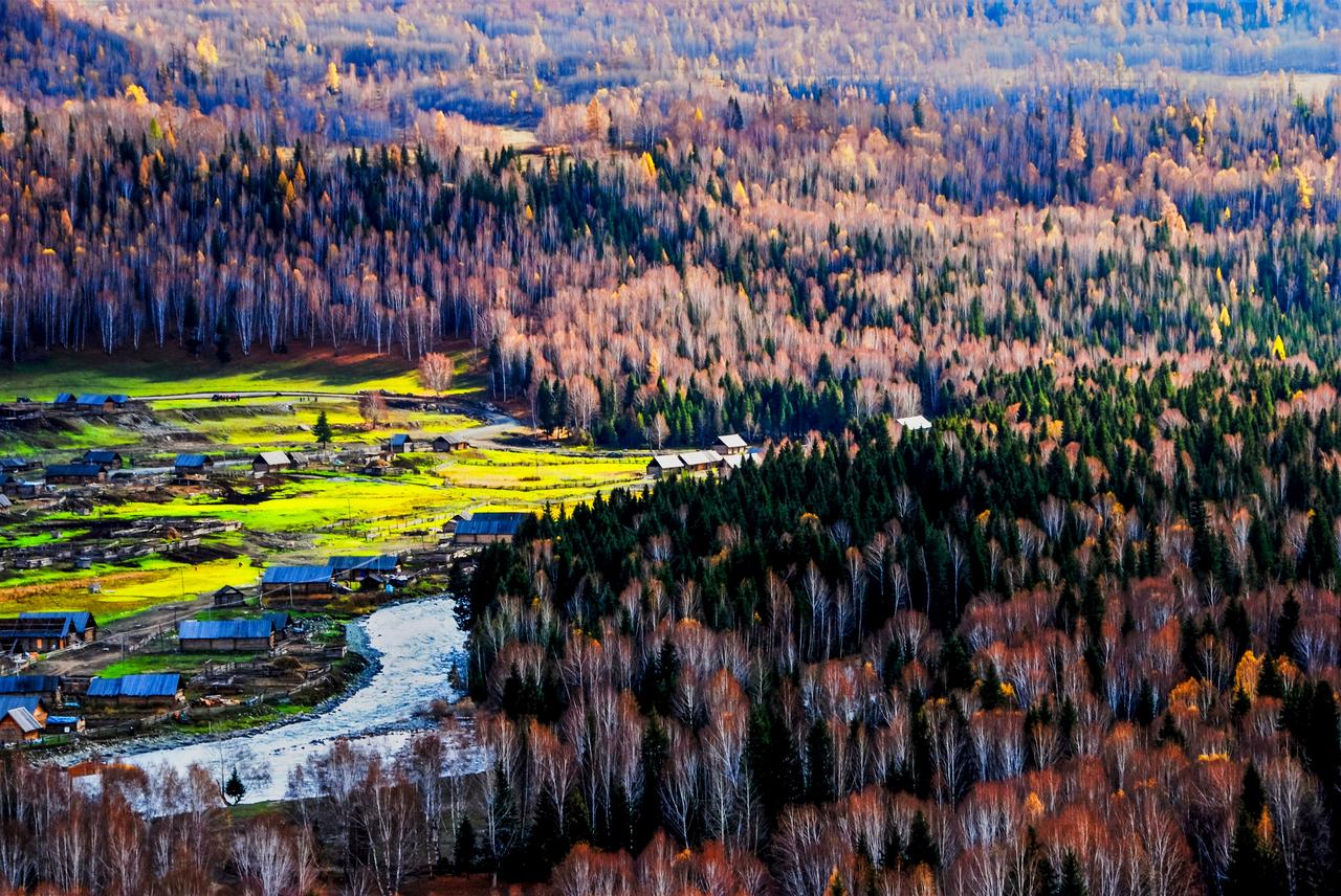 秋染禾木,藏在北疆的童话秘境 当秋风掠过新疆阿勒泰布尔津县的禾木村,整个村落便被揉进了斑斓的调色盘里。 层林尽染的白桦林褪去葱茏,晕开金红与橙黄的渐变,澄澈的溪流绕着木屋蜿蜒流淌,青绿的草甸还凝着最后一抹生机,与彩林相映成趣。 晨光里的村落裹着薄雾,暮色中又浸着暖黄,每一寸山野都写满北疆秋日的浪漫,这是独属于禾木的秋日盛景,藏着最动人的自然诗意。禾木旅游景区 禾木风景 阿勒泰禾木村 初秋的禾木风景 禾木自驾游 秋色禾木村 冬季的禾木风景