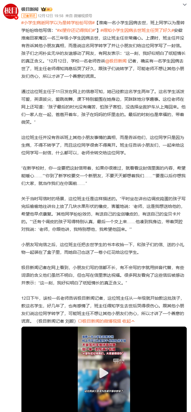 小学生病逝同学以为是转学纷纷写信那些稚嫩的信件,藏着孩子最本真的情感,却也戳中了我们心底的柔软。生命无常,对孩子们来说太过残酷。但换个角度看,这何尝不是一次生命教育的契机?用爱与勇气,帮孩子读懂生命的意义,才能让他们在成长路上,少些遗憾,多些力量。