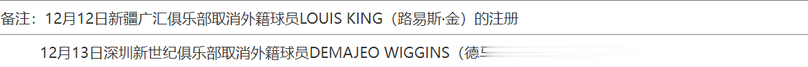 此外,新疆男篮已取消路易斯-金的注册,深圳男篮已取消德马吉奥-维金斯的注册。