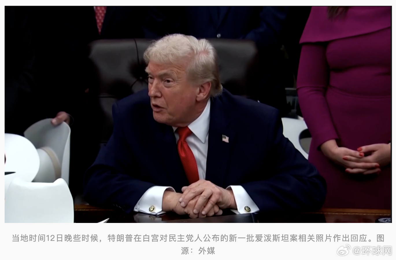 #白宫回应涉爱泼斯坦案新照片#【涉及大量知名人士!民主党人公布新一批爱泼斯坦案相关照片,特朗普、白宫回应】据法新社、英国天空新闻网等媒体报道,美国众议院监督委员会的民主党议员当地时间周五(12日)公布了新一批爱泼斯坦案相关照片,其中包括美国总统特朗普、前总统克林顿等知名人士。对于民主党方面的新动作,特朗普本人和白宫同日晚些时候作出回应。报道称,新一批照片中还包括特朗普首个任期内担任白宫首席战略师的史蒂夫·班农、美国前财长拉里·萨默斯、导演伍迪·艾伦、已被剥夺英国王室头衔的“安德鲁·蒙巴顿·温莎”以及微软公司创始人比尔·盖茨和维珍银河创始人理查德·布兰森等。法新社称,这些未注明日期的照片似乎并未体现任何非法行为。天空新闻网也称,没有迹象表明这些照片暗示相关人员有任何不当行为。但曝光这些照片的众议院监督委员会民主党人表示,“这些令人不安的照片引发了更多关于爱泼斯坦及其与世界上一些最有权势的人之间关系的问题”。特朗普12日晚些时候在白宫椭圆形办公室回应这批新照片时表示,他还没有看过,且“没什么大不了的”。“好吧,我还没看过,但我意思是,每个人都认识这个人(爱泼斯坦)。”特朗普称,“他常出入棕榈滩,跟每个人都拍过照。我意思是,几乎成百上千的人都跟他合过影,所以这没什么大不了的。”对于民主党方面公布的新一批爱泼斯坦案相关照片,白宫发言人阿比盖尔·杰克逊谴责称,民主党人“有选择性地公布一些经过精心挑选、随意涂改的照片,试图制造虚假叙事”。爱泼斯坦与大批美国政商名流交往密切,因涉嫌性犯罪被捕后,2019年8月死于狱中,被判定为“自杀”。美国司法部和联邦调查局今年7月7日发布备忘录,认定没有可信证据表明爱泼斯坦掌握一份用于勒索知名人士的“客户名单”、没有证据表明爱泼斯坦死于谋杀,并表示今后不会发布更多爱泼斯坦案文件。近来,共和党内部因是否支持公开爱泼斯坦案文件产生分裂。11月16日,特朗普一反先前立场,呼吁共和党众议员投票支持公开爱泼斯坦案文件,称“我们没什么可隐藏的”。多家媒体分析认为,特朗普的态度之所以出现180度大转变,是因为不少共和党籍众议员不顾党内高层指令,愿意投票支持公开爱泼斯坦案文件。11月19日,特朗普宣布,他已经签署要求司法部公开爱泼斯坦相关案件文件的法案。