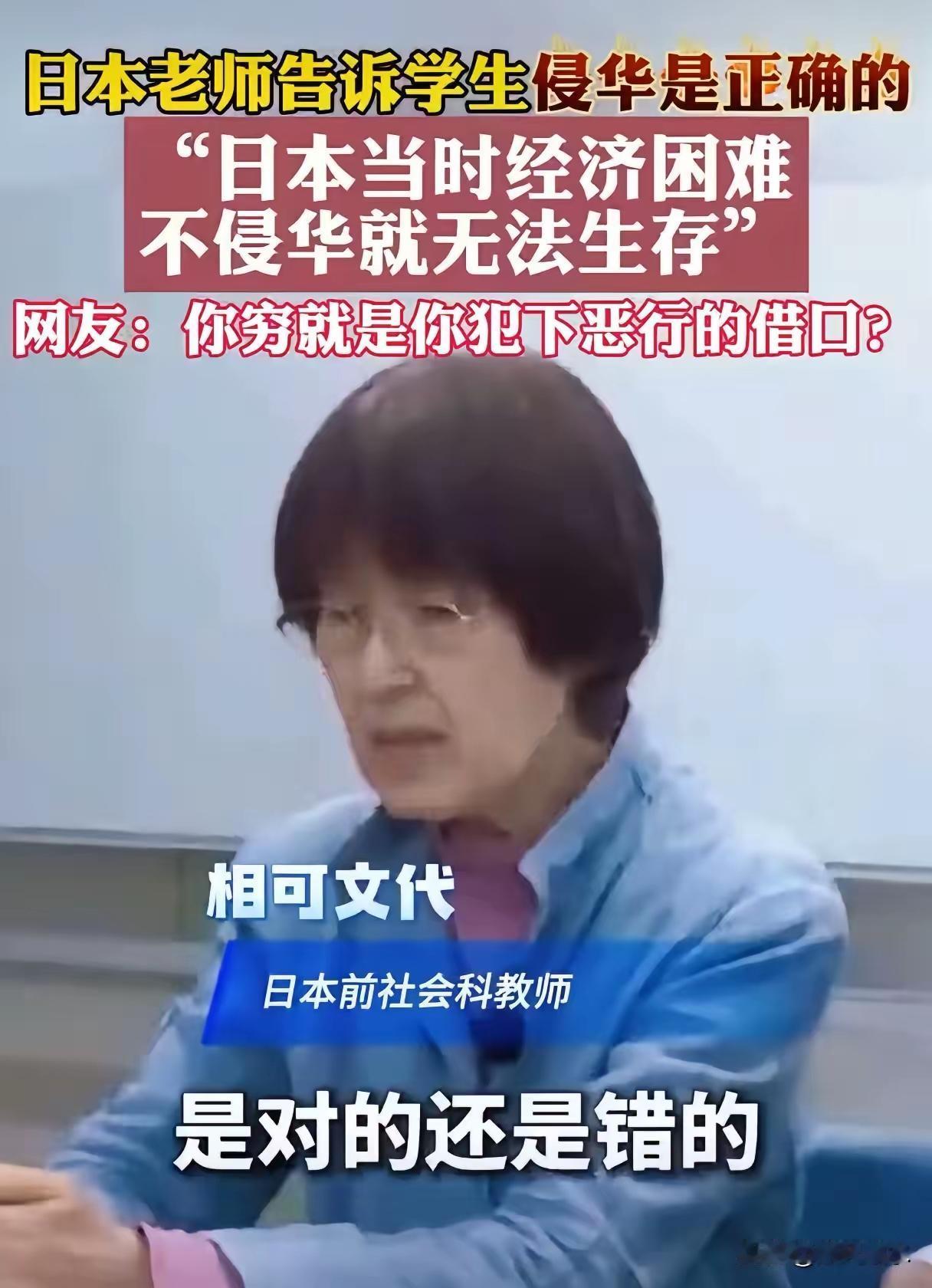 她说是真话,日本物资匮乏,资源有限。中国地大物博,,但经济落后,一盘散沙。他们只有侵略我们掠夺我们的资源,抢劫我们的金银财宝,真是无恶不作!但他们认为是天经地义!这是他们的本性所决定的。
