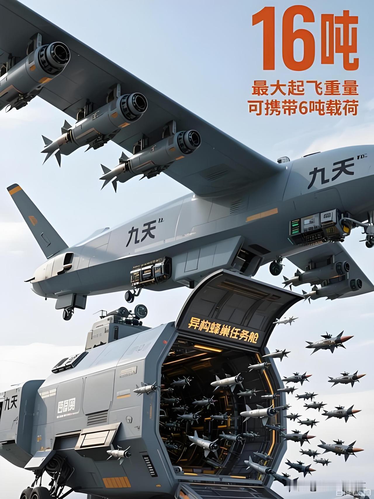 “九天”无人机是我国自主研发的大型通用无人机,采用“通用平台+模块化任务载荷”设计理念,具备大载重、高升限、宽速域、短起降等核心优势。 核心性能参数 尺寸与重量:机长16.35米,翼展25米,最大起飞重量16吨,载荷能力达6000公斤。 航程与航时:转场航程7000公里,航时12小时。“九天”无人机最大续航时间为12小时,最大航程可达7000公里。其采用涡扇发动机,未来或换装氢燃料动力系统,续航时间可延长至36小时。 动力系统:采用涡扇发动机,最大飞行高度1.5万米,最快飞行速度700千米/小时。 模块化设计 通过快速更换任务舱,可在两小时内切换任务类型,满足空运空投、信息支援与对抗、火力打击与支援等需求。机腹集成“异构蜂巢任务舱”,可容纳上百枚巡飞弹或小型无人机,被誉为“空中无人机航母”。 应用场景 军用领域:可挂载多种武器,如制导炸弹、空空导弹、反舰导弹等,并具备蜂群作战能力。 民用领域:适用于偏远山区、海岛的重型物资运输与精准物流投送,以及地理测绘、灾情评估、矿产普查等。 “九天”无人机目前公开的型号和变体信息如下: 基础型号:这是最核心的型号,最大起飞重量16吨,翼展25米,最大航程7000公里,有效载荷6吨。它采用涡扇发动机与喷气动力混合驱动,巡航速度达700公里/小时。 蜂群母舰型号:该型号机腹集成有“异构蜂巢任务舱”,可携带200-300架微型无人机或巡飞弹,作为“无人机母舰”释放蜂群执行饱和攻击任务。 模块化任务型号:通过快速更换任务舱,可适配多种任务场景。例如: 文保勘测任务舱:用于文化遗产保护、地形测绘等民用领域。 运输任务舱:可转换为运输舱段,承载12吨物资。 此外,其设计具备高度模块化特点,武器舱可在短时间内转换为蜂巢母巢或运输舱段。 “九天”察打无人机的蜂群母舰型号通常指其基础平台型号,即“九天”重型察打一体无人机。该平台具备作为蜂群母舰的核心能力,其机腹集成的“异构蜂巢任务舱”可容纳并释放上百枚小型无人机或巡飞弹,实现蜂群作战。 在公开资料中,“九天”无人机的型号未出现细分变体,其核心参数包括:最大起飞重量16吨,翼展25米,最大任务高度15000米,最大飞行速度700公里/小时,载荷能力6000公斤,并配备8个外挂点。 这种设计使其能灵活执行侦察、打击、电子对抗等任务,通过模块化任务舱扩展为蜂群母舰。 “九天”无人机于2025年12月11日完成首飞,标志着中国在重型察打无人机和蜂群母舰技术领域的突破。 其蜂群母舰能力在2024年珠海航展首次亮相时已引起关注,被外界称为“空中母舰”或“蜂群母舰”。 (作者声明:图文系百度搜索,含AI生成内容,若侵权即删除!)