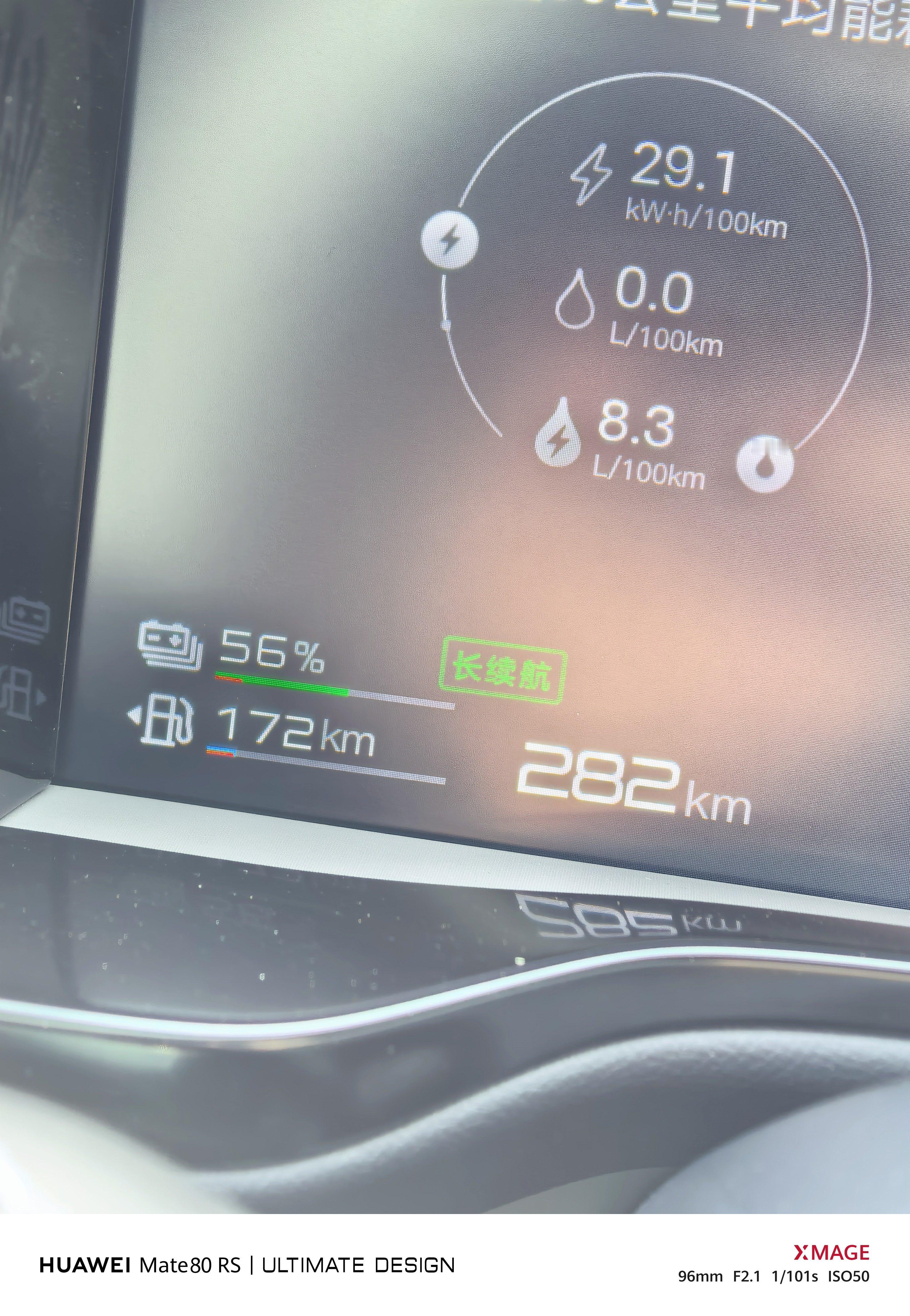 刚才试了试豹5长续航版的续航达成率,出发表显剩余里程341km,实际行驶路程46km,全程山路且满载出行,抵达后表现剩余里程282km。续航达成率78%左右,感觉挺不错了啊