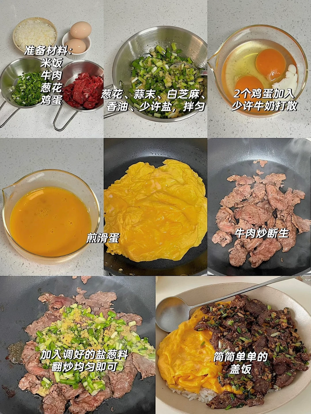 宅家一人食🍴|盐葱牛肉滑蛋盖饭🍱简单美味