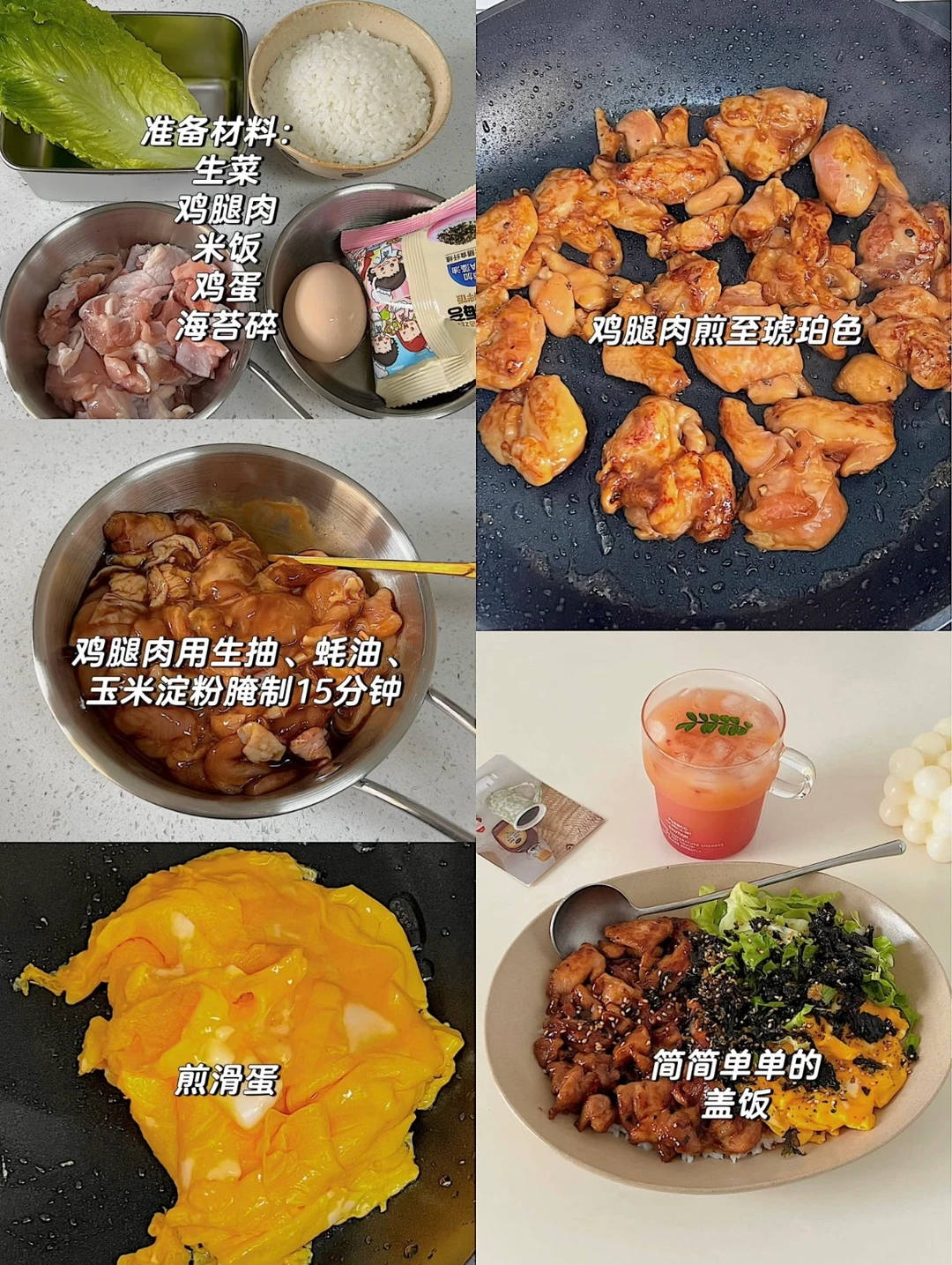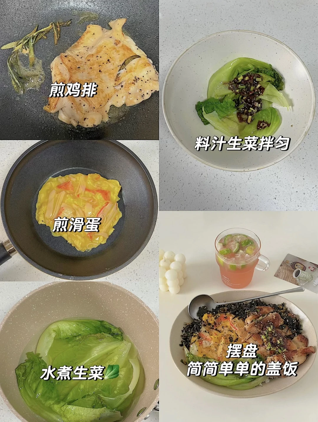 干净饮食贵在坚持,每天不重样吃饭好心情 1️⃣虾滑秋葵盖饭🍱 2️⃣牛排南瓜虾仁蓝莓沙拉🍽️ 3️⃣香煎黑椒鸡腿排滑蛋盖饭🍱 4️⃣香肠煎蛋老式盖饭🍱 5️⃣鸡肉生菜滑蛋盖饭🍱 6️⃣盐葱牛肉滑蛋盖饭🍱 做法往后翻哦,宝宝们吃饭开心🥳