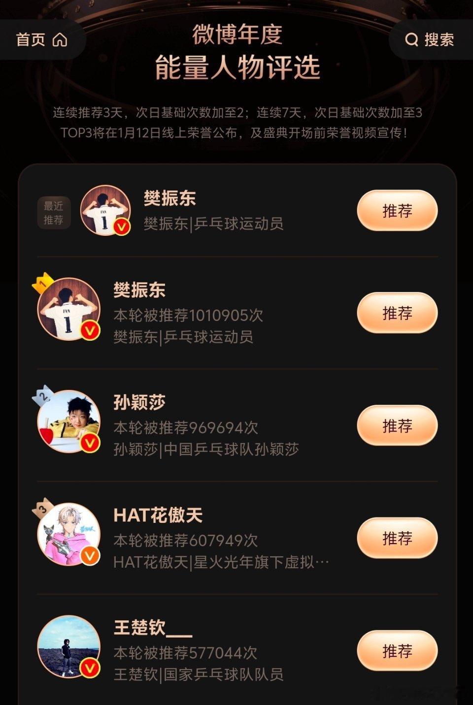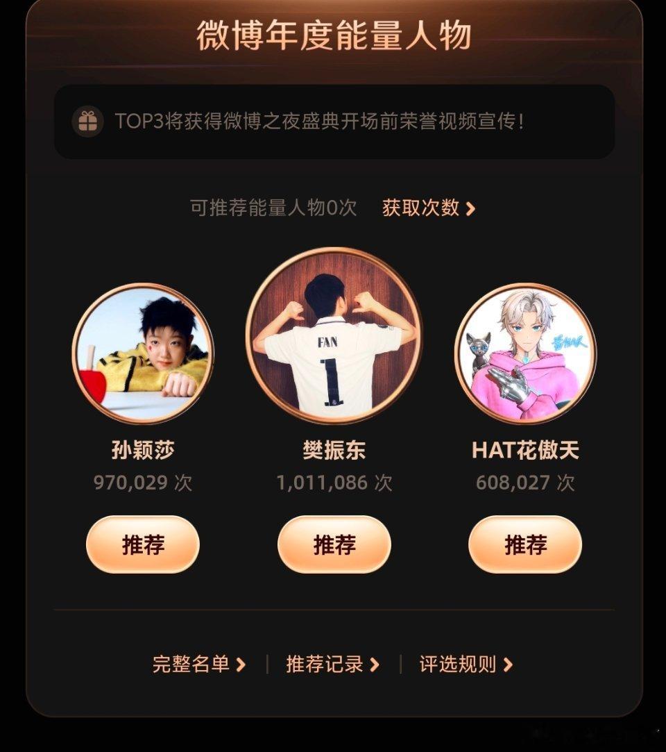 樊百万再次来临,樊振东这一次是荣登微博年度能量人物榜,竞体界首位破百万选手。以实力征服赛场,以人品拥有群众口碑。