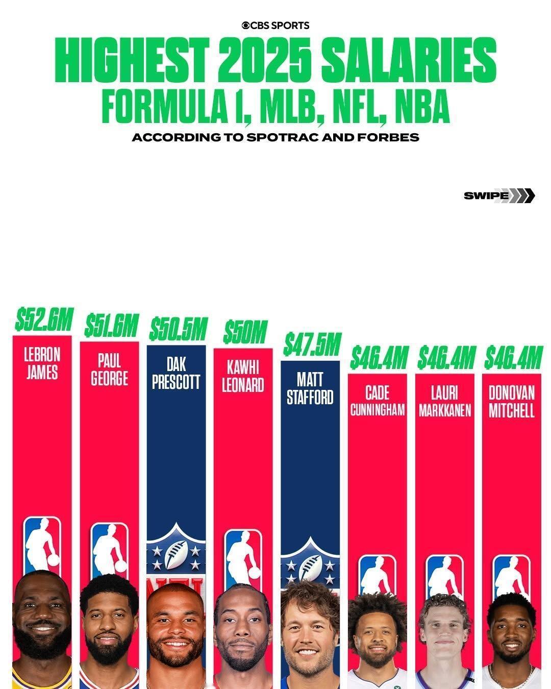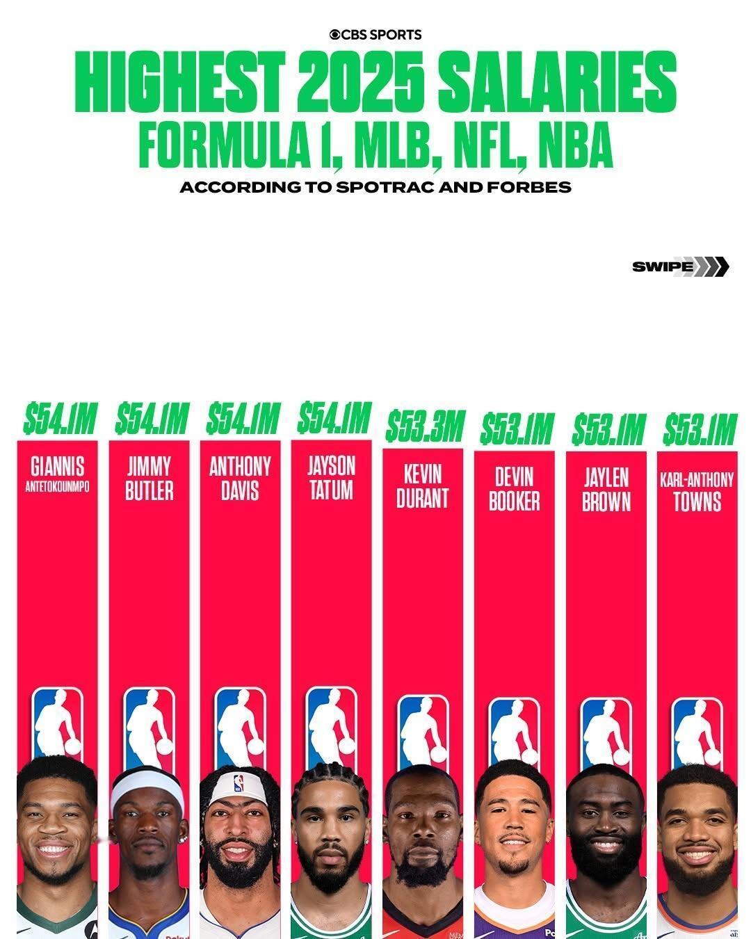 2025薪资最高的运动员,NBA还是很牛的。