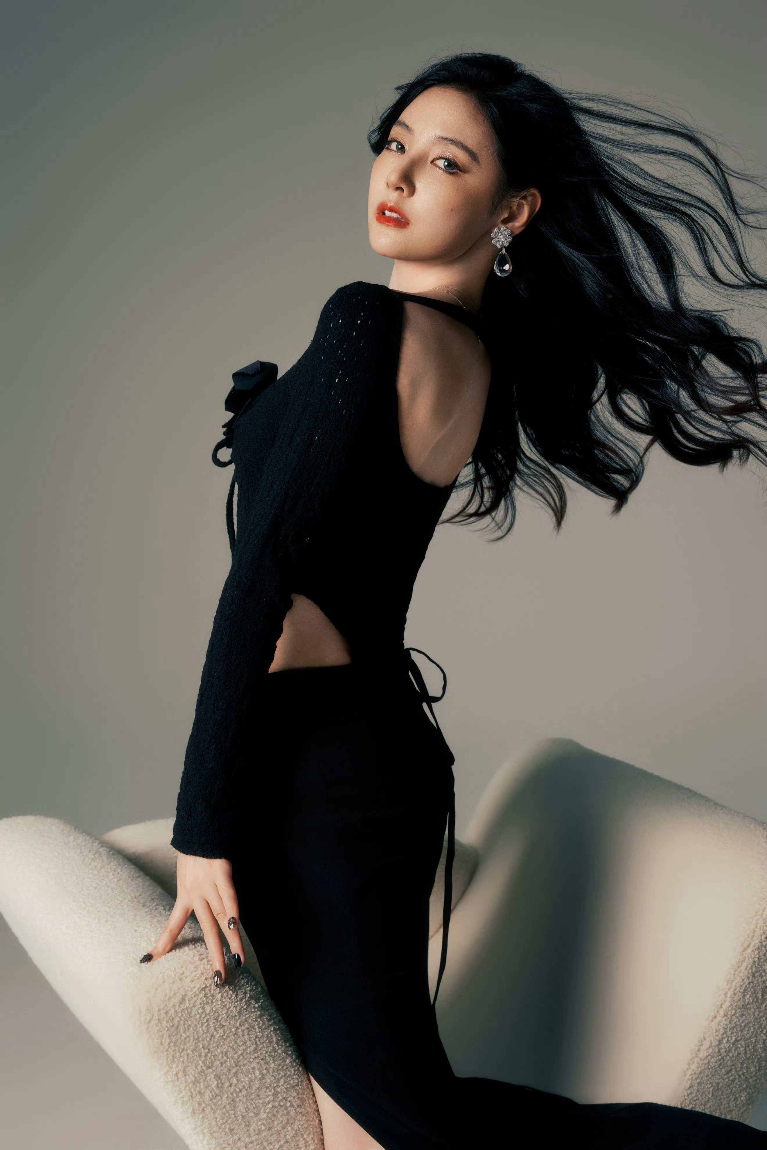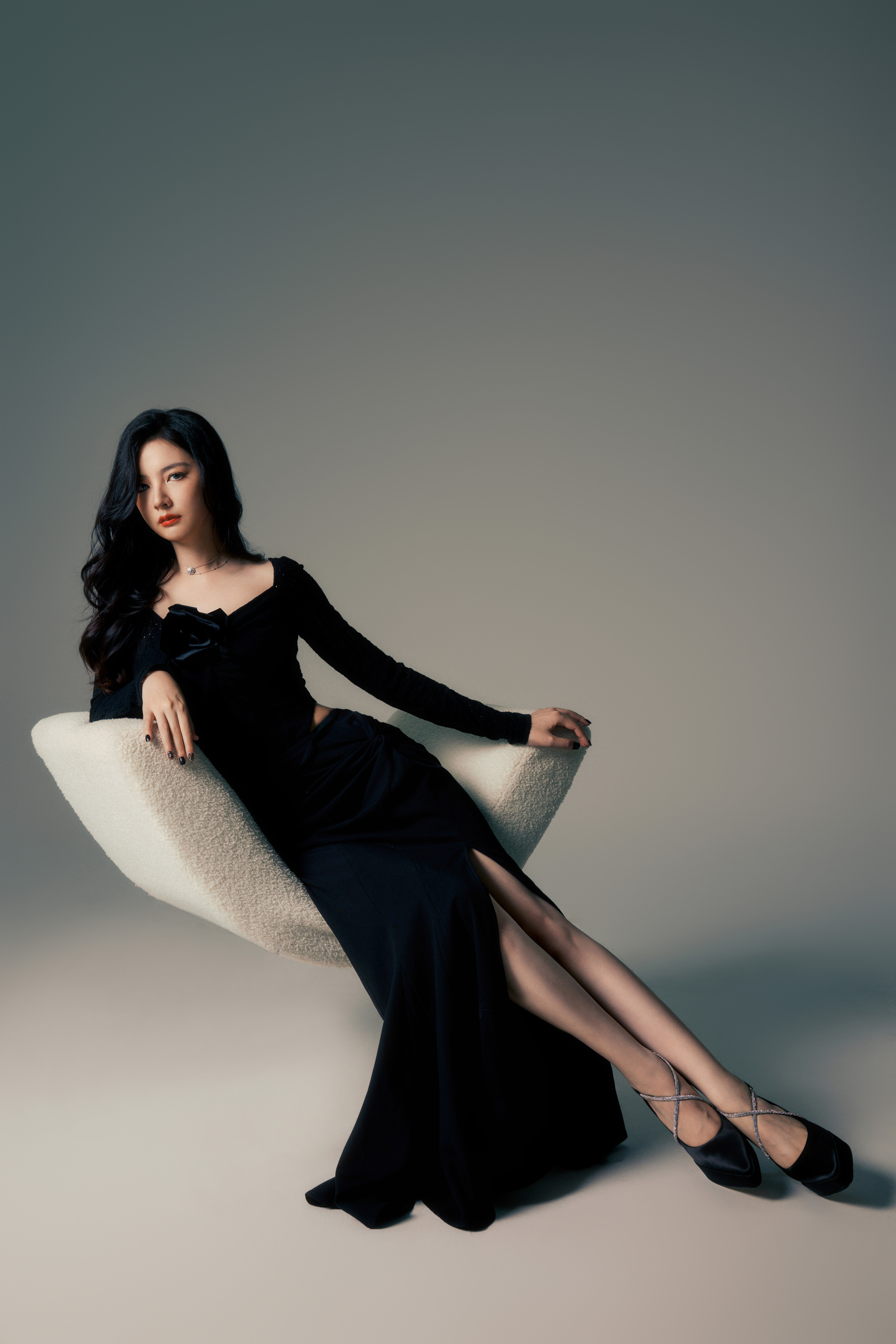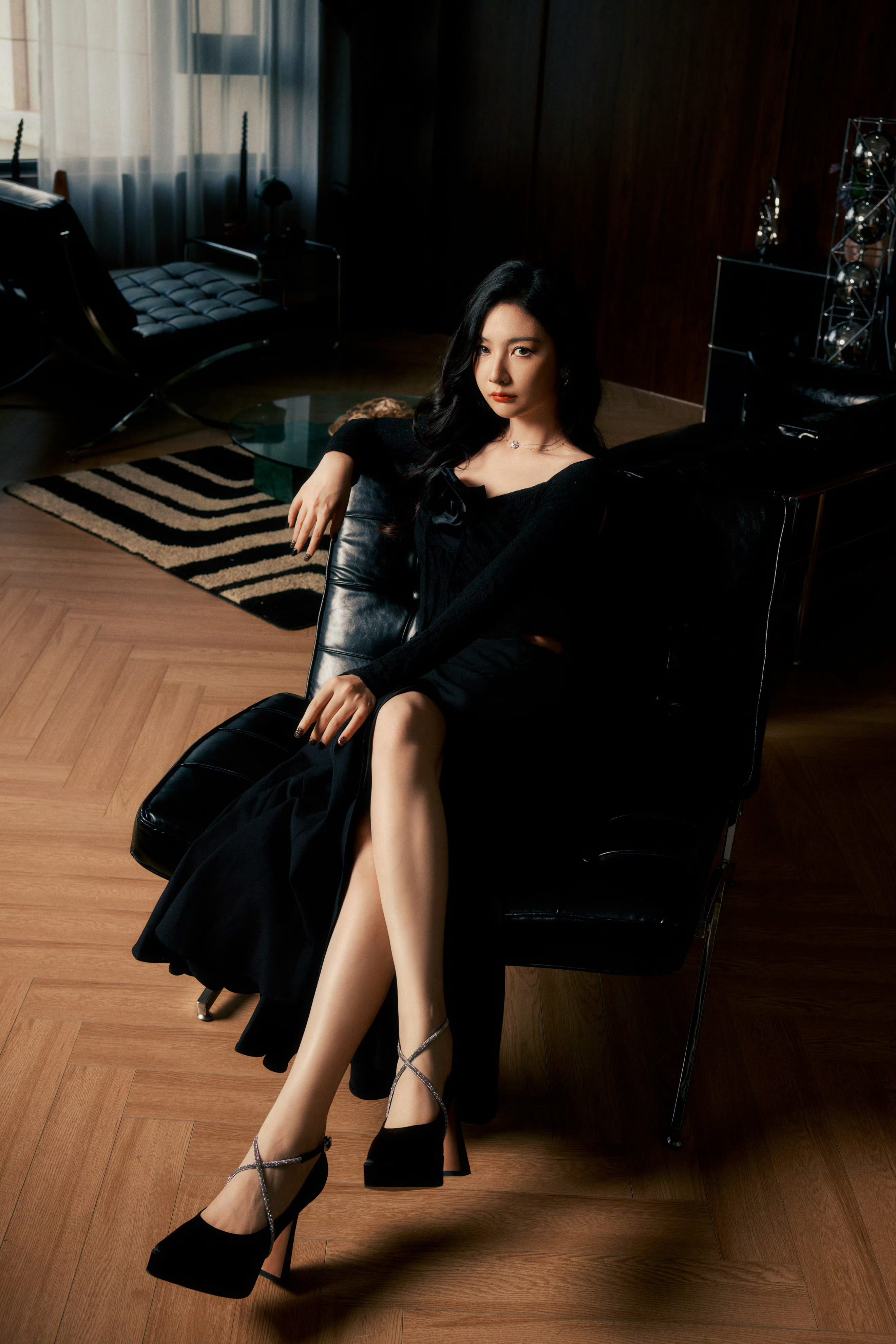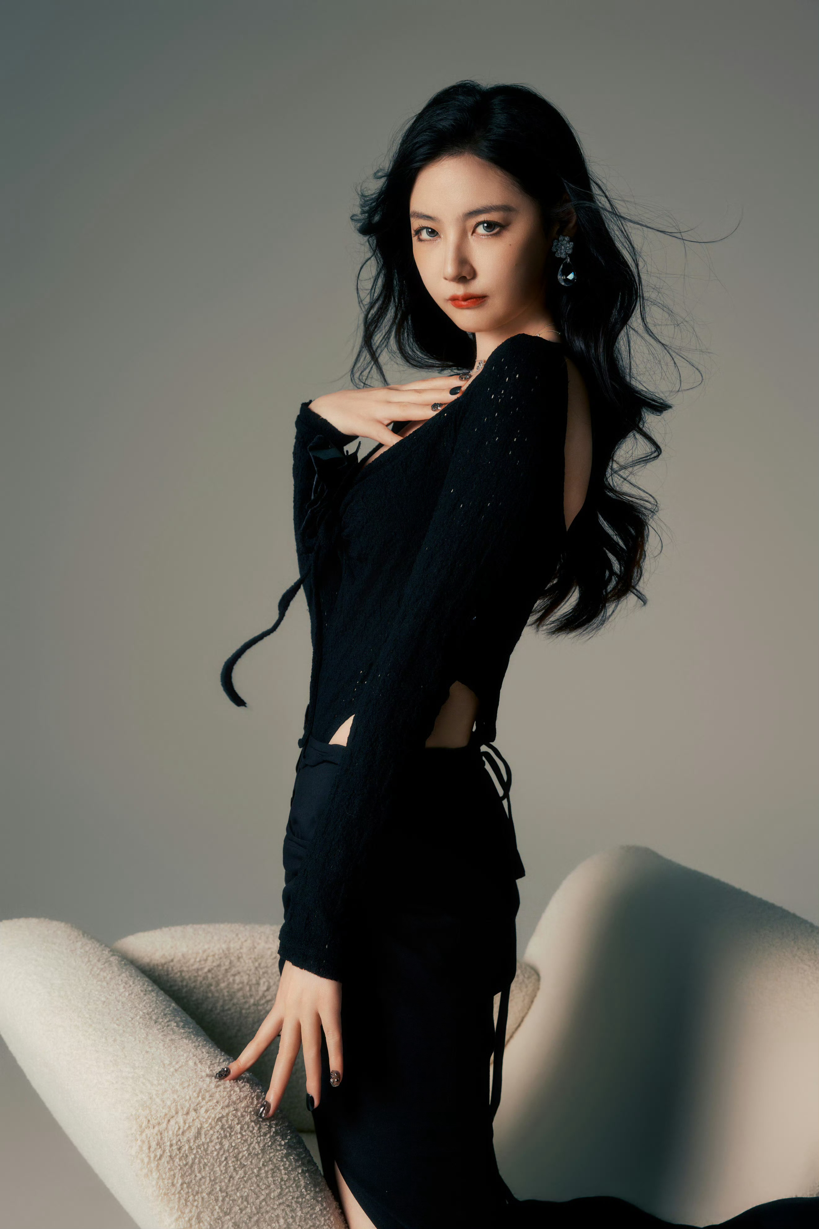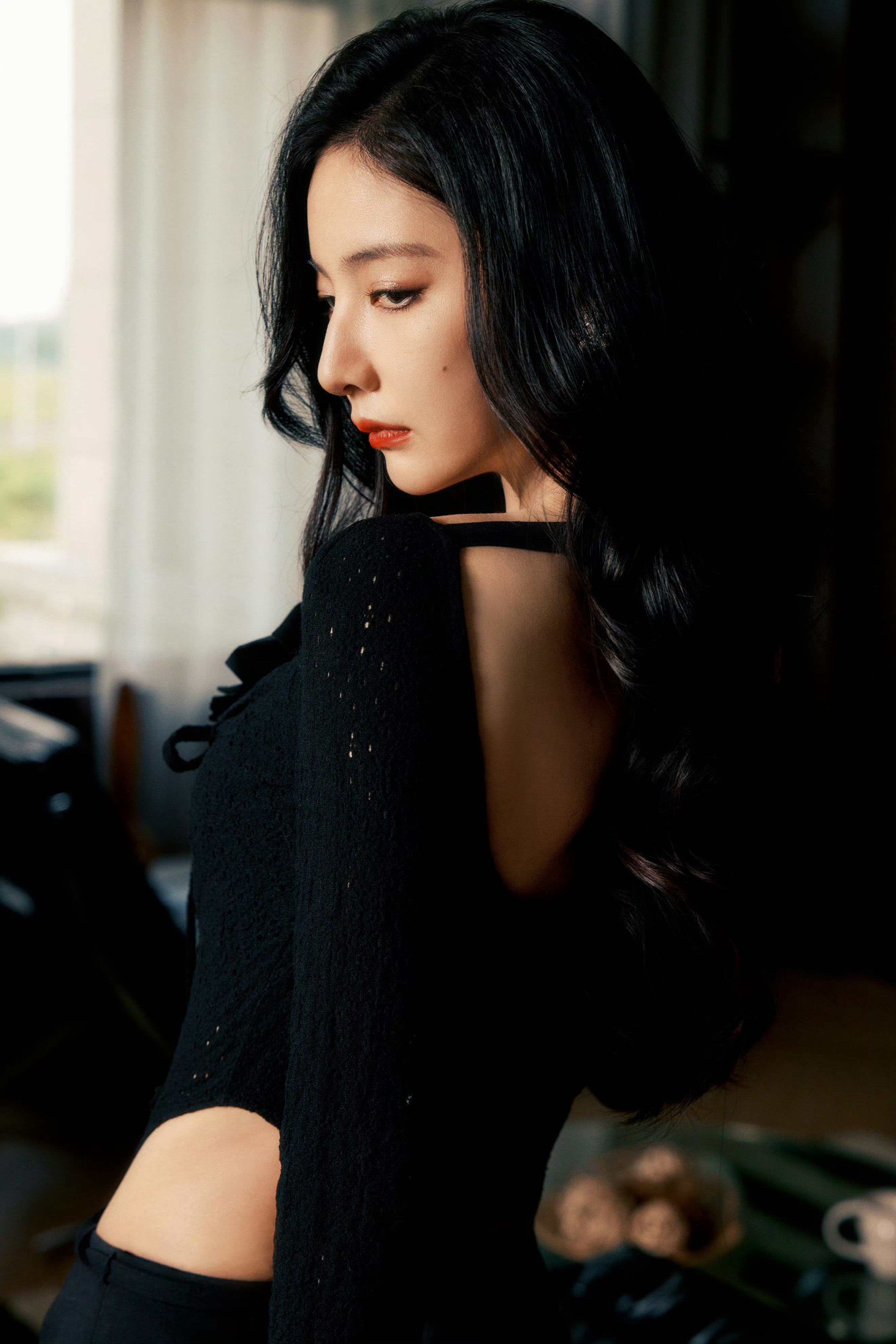 赵粤,卷发黑裙,冷酷时尚。赵粤