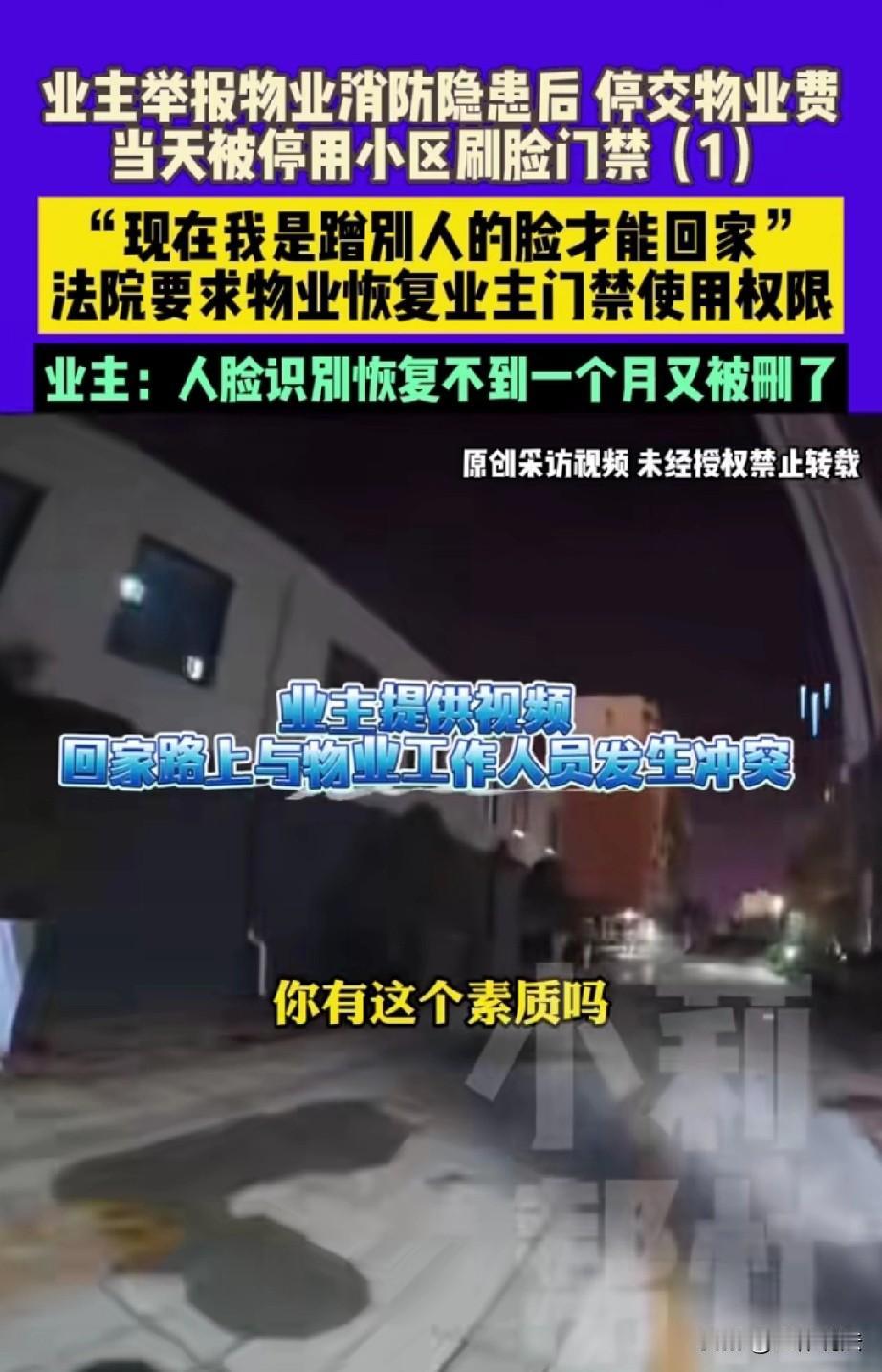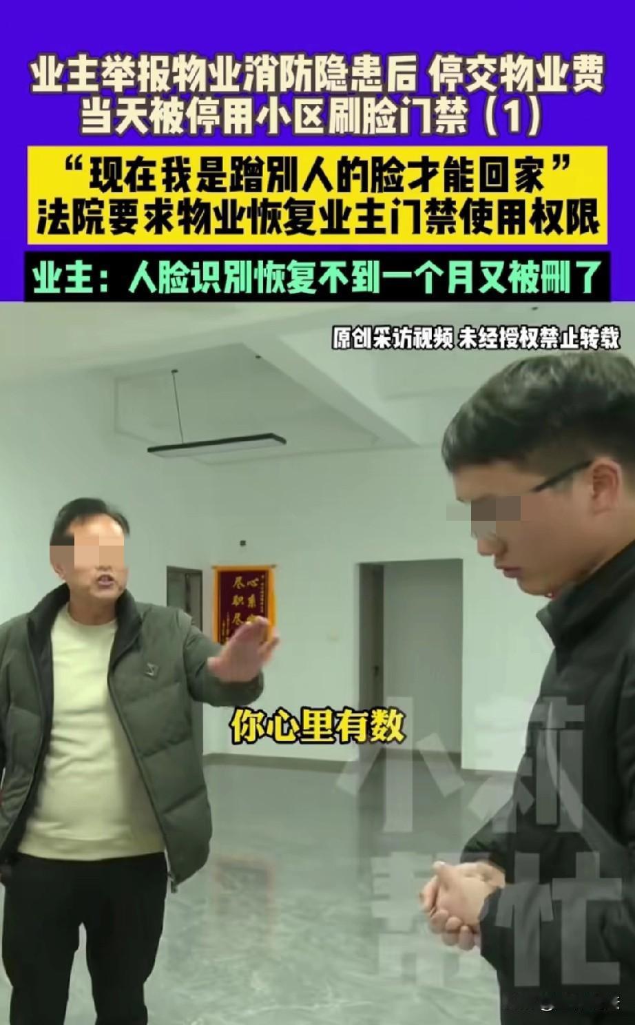 河南周口,男子发现小区的消防建设不合规,出于安全考虑,他实名举报了小区物业。没想到,物业非但没有立即整改,反而变着法的整他,不仅频繁对男子进行言语骚扰,还去他的工作单位骚扰。更可恨的是,物业利用职务便利,取消了男子的门禁系统,男子每次回家都要看保安的心情,心情不好了就得报警才能回家。男子为此闹上法庭,物业这才给他恢复了门禁使用权,结果不到一个月,物业又取消了他的门禁系统。男子求助记者,可谁知,物业的解释让男子实在无法接受。 孙先生怎么也没想到,自己只是为了小区安全,实名举报了物业的消防违规问题,竟让他的日子过得憋屈又闹心。 那天,孙先生偶然路过小区消防监控室,发现里面空无一人。 他心里咯噔一下,国家明确规定这个岗位得有两名持证人员值班,这可是关系到全小区人生命安全的大事。 他没多想,第一时间找到物业沟通,盼着对方能赶紧整改。可物业那边嘴上应承着,行动上却半点动静都没有。 孙先生越想越不安,思来想去,还是咬咬牙,实名向消防部门举报了这件事。 他以为这是身为业主的本分,举报之后物业总能正视问题,可他低估了物业的报复心。 从举报的那天起,孙先生的日子就没安生过。 从此以后,孙先生在小区里碰到物业人员,对方不再是往日的客气,取而代之的是夹枪带棒的言语骚扰,话里话外都在暗示他“多管闲事”。 孙先生心里又气又堵,他明明是为了大家好,怎么反倒成了“罪人”? 更让他崩溃的是,物业竟然还找到他的工作单位,给领导打电话恶意中伤,把他说得一无是处。 看着同事们投来的异样目光,孙先生恨不得找个地缝钻进去,工作和生活彻底被搅得一团乱。 屋漏偏逢连夜雨,5月3号物业费到期,孙先生越想越咽不下这口气,索性没交。 这下可给了物业“正当理由”,他们直接利用职务便利,把孙先生的人脸门禁权限删掉了。 没了门禁,孙先生回自己的家,却像个外人。 每天下班,他只能眼巴巴等着邻居开门,蹭着别人的门禁进去,那种小心翼翼的感觉,让他觉得自己跟做贼似的。 他找物业理论,对方态度强硬,丝毫没有商量的余地。 被逼无奈,孙先生只能一纸诉状把物业告上法庭。 法院介入后,物业总算松了口,把孙先生的门禁权限恢复了。 孙先生本以为事情能就此平息,可他还是太天真了。不到一个月,门禁权限又被莫名删除,他再次陷入了“有家难回”的困境。 之后的日子,孙先生回家全看保安的心情。 保安心情好的时候,说道他几句,最终还能摆摆手让他进去。 但要是保安脸色难看的时候,他只能站在门口干着急,最后不得不报警,等警察来了协调,才能踏进家门。 那种无助和委屈,压得孙先生喘不过气。 有家不能回,孙先生只能求助记者,诉说着他的遭遇。 记者找到物业讨要说法,物业负责人却振振有词,说这一切都是因为孙先生没交物业费所致,还声称小区的物业费和门禁是绑定的,不交钱就自动删除权限。 好在记者从中协调,物业终于承诺,马上给孙先生恢复门禁,小区的消防问题也会在三天内整改到位。 从法律角度而言,物业以“未交物业费”为由取消门禁权限,这是违法的。 《民法典》第九百四十四条规定:物业服务人不得采取停止供电、供水、供热、供燃气等方式催交物业费。 门禁系统是小区业主正常通行、使用专有住宅的必需设施,直接关系到业主的居住权益和基本生活保障,其重要性与水、电、气等生活必需资源相当。 本案中,孙先生因物业未整改消防违规问题而拒交物业费,即便存在欠缴行为,物业也应依据该法条规定,通过催告、诉讼或仲裁等合法途径主张权利。 但物业却将物业费与门禁权限绑定,两次擅自取消孙先生的人脸门禁权限,导致其“有家难回”。 这本质上是通过限制业主基本生活权益的方式催交物业费,侵害了孙先生的建筑物区分所有权和正常居住权。 其次,物业未整改消防违规且实施报复性骚扰,更是拿着鸡毛当令箭。 《民法典》942条规定:物业服务人应当按照约定和物业的使用性质,妥善维修、养护、清洁、绿化和经营管理物业服务区域内的业主共有部分,维护物业服务区域内的基本秩序,采取合理措施保护业主的人身、财产安全。 保障小区消防设施合规运行是物业履行“保护业主人身、财产安全”义务的核心内容,国家明确要求消防监控室需两名持证人员值班,物业未按规定配备值班人员,已构成违约。 在孙先生实名举报后,物业不仅未及时整改消防隐患,反而实施报复性行为,既破坏了小区基本秩序,也侵害了孙先生的名誉权和正常工作生活秩序,完全背离了物业服务的核心宗旨。 即便物业以“未交物业费”为借口,也不能免除其法定的消防整改义务和不得侵害业主合法权益的责任,其一系列行为已构成双重违约,需要承担相应的民事侵权责任。