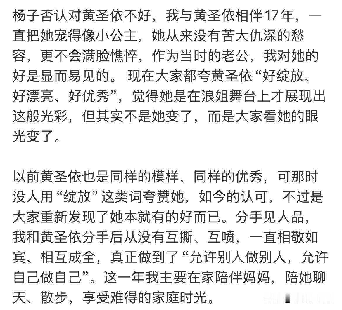 12月13日,杨子嘴里有几句话是真的? 昨天还看到他放出豪言说要追回黄圣依,今天看到他带李隽子直播怼网友,否认对黄圣依不好,还说把黄圣依宠成了小公主…… 黄圣依哪里是什么小公主,分明是他养在家里,用孩子绊住她脚步的金丝雀! 黄圣依跟了我们17年,“我”能理解,“们”都有谁?人家说他江山易改本性难移,嘴唇薄薄情,他怼人家,不得财宠……