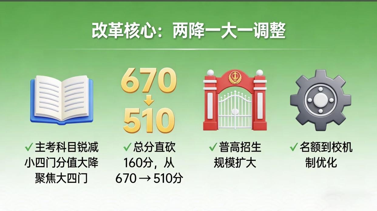 中考改革落地! 家长狂喜盼全国统一, 大家纷纷议论 2025年北京中考大改革正式实施,总分从670分降到510分,只考语文、数学、英语、物理、道法和体育6门课,其他科目不计入中考总分,哪怕不及格也能上高中,消息一出全国家长都炸了,纷纷喊着要全国统一! 不少家长开心坏了,说终于能给孩子减负了,以前孩子学那么多科目,熬夜刷题压力大,现在精简科目,能专心攻主科,心理负担都轻了不少。但也有家长犯愁,觉得科目少了竞争反而更激烈,大家都盯着语数外主科,一分就能差好多名次,一点不敢放松。 还有人纠结政策该不该全国统一,有人盼着各地都跟上,也有人觉得得结合当地情况来。评论区吵得火热,家长们不光关心改革能不能真减负,更担心会影响以后高考,满心都是对孩子升学的牵挂。