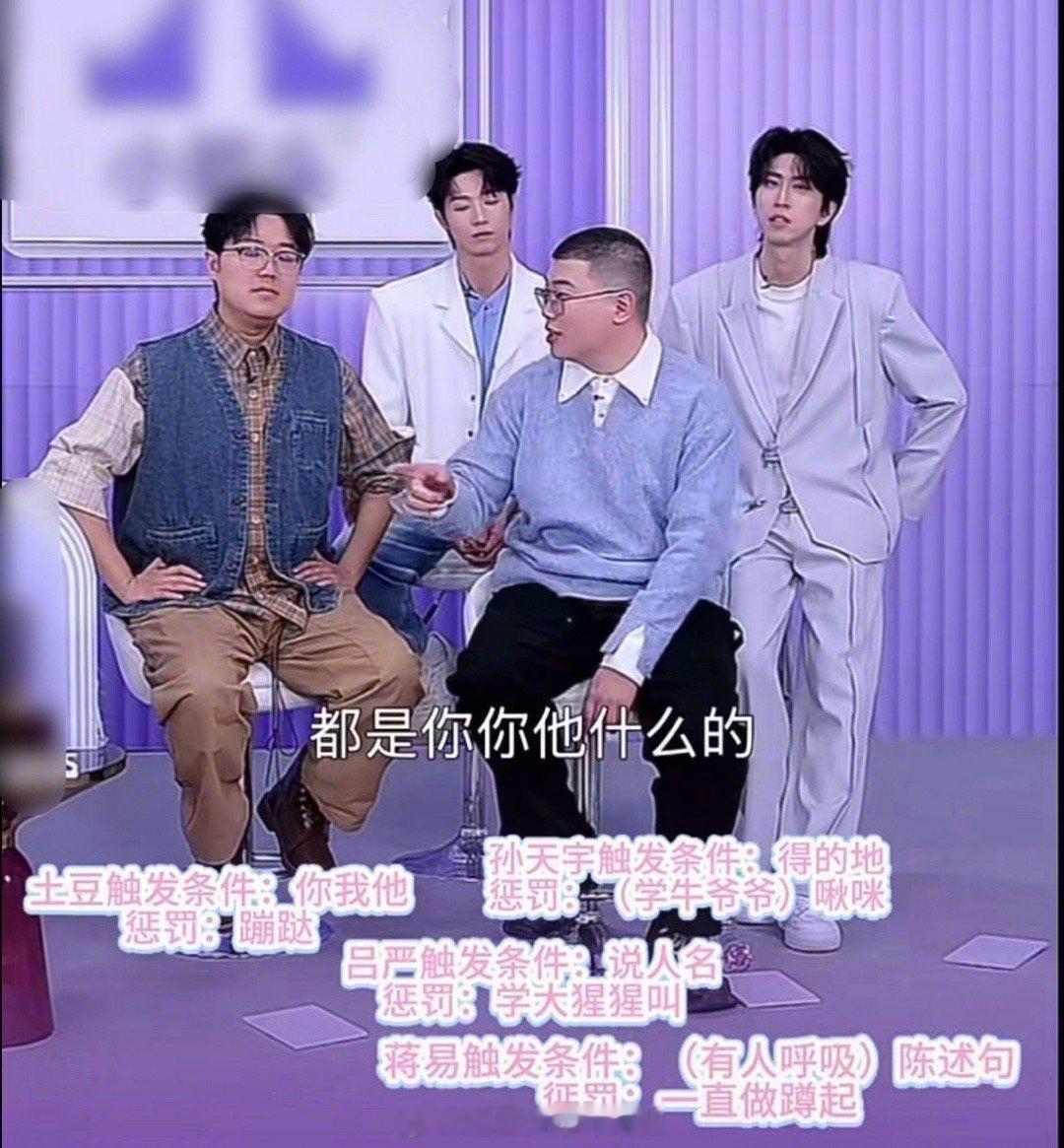 50年内没人看得懂四仙子这段 四仙子的默契(混乱)测试现场,人均触发关键词的倒霉蛋!孙天宇一边防着“的地得”一边被迫卖萌“啾咪”,土豆突然被迫营业蹦跳,蒋易乖巧蹲守变“蘑菇”,吕严名字一出现就自动“唔吼吼”。这团综不拍,天理难容!
