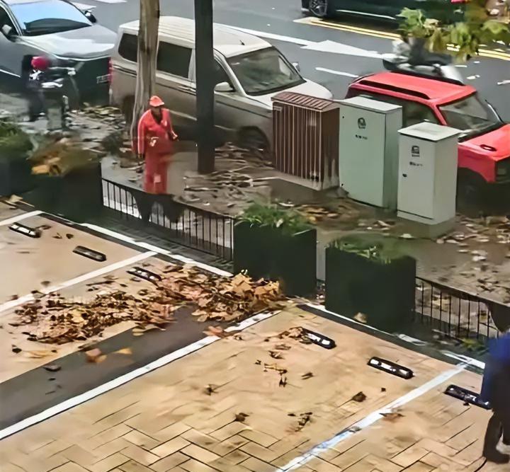 环卫工VS清洁工,这次我站环卫工。 冬天来了,路边树叶掉落,引发了环卫工和停车场