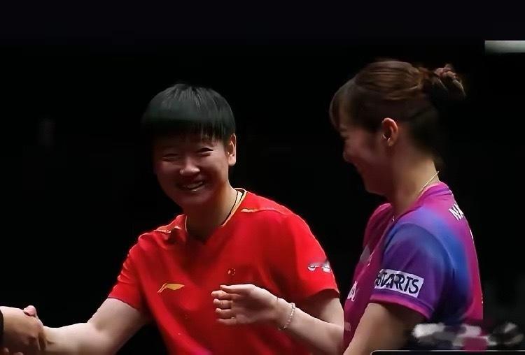 王励勤都被莎莎手足无措的样子,逗笑了!当时莎莎举手请求鹰眼,自己先不好意思了,笑的太可爱了!王励勤看在眼里,更心疼莎莎了!莎莎就是心地善良,经常被对手遮挡回抛发球,她从来不说,这一次要不是长崎美柚太过分,都超过41度了,莎莎也不会申请鹰眼!打完比赛,还对长崎还一脸愧疚的道歉,自己仿佛做错事的孩子!这孩子心地太善良,容易吃亏!