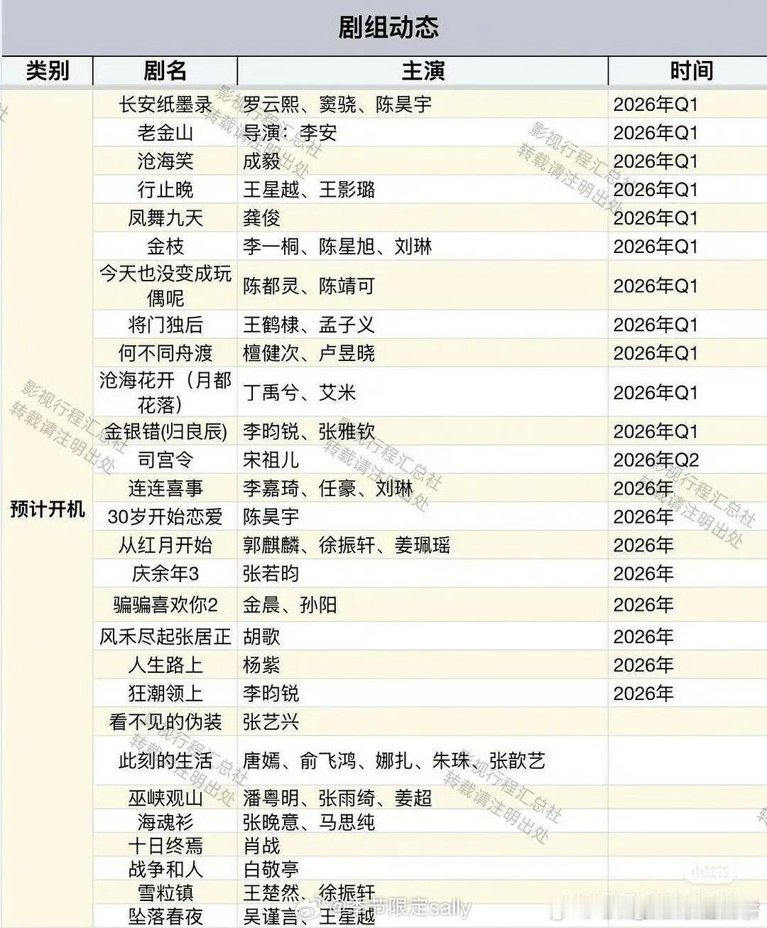 刘诗诗、陈都灵、曾舜晞、田嘉瑞、余承恩、夏之光,陈飞宇,展轩,胡一天12月行程?