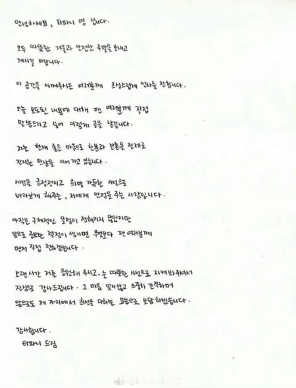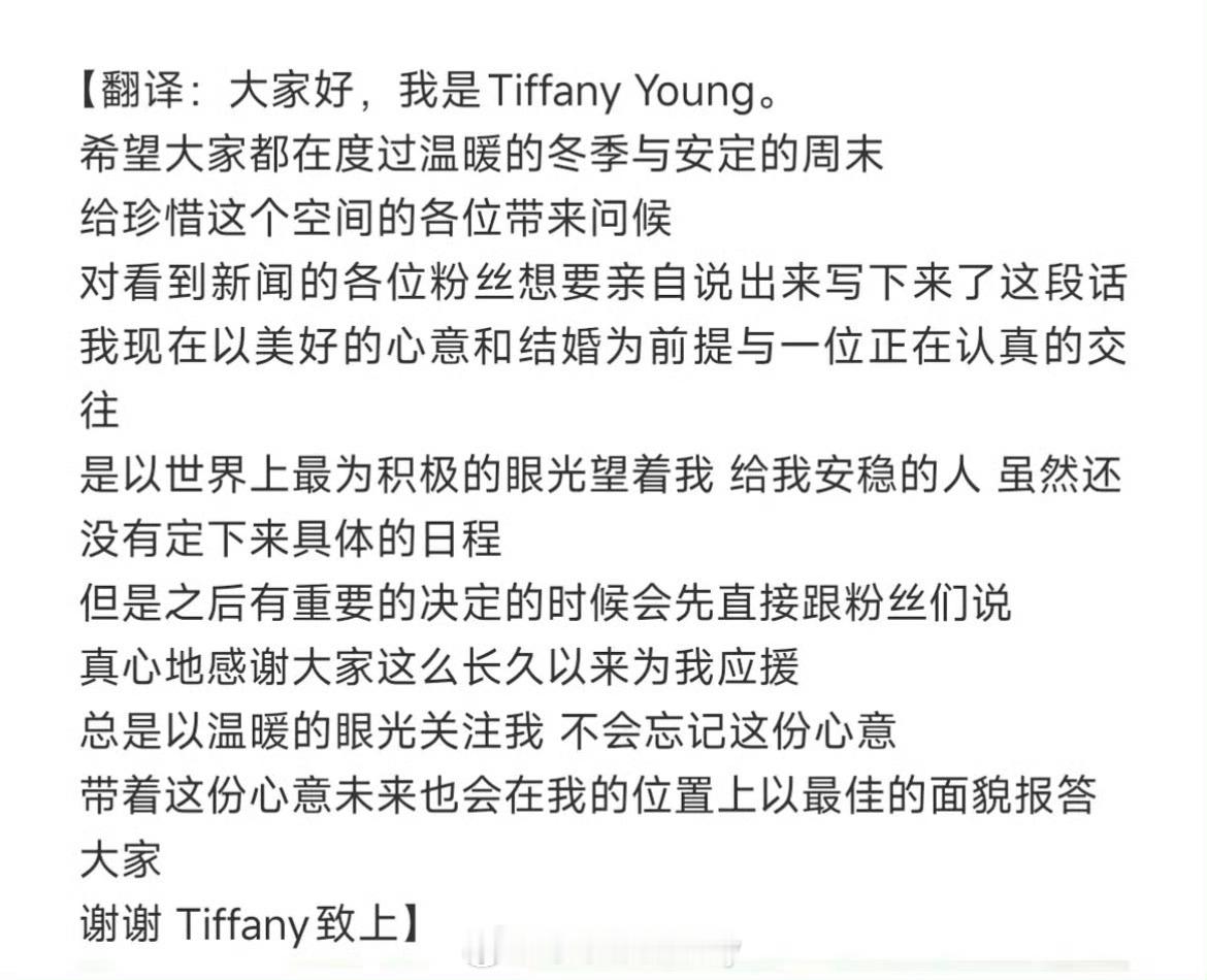 少女时代Tiffany手写信回应恋情了,真的要结婚了 少女时代结婚第一人