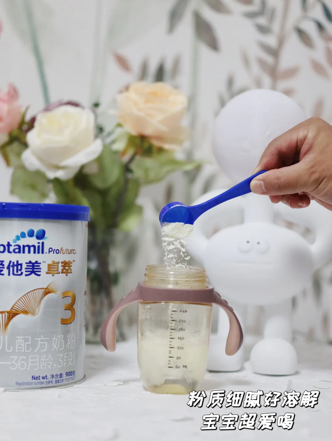 当然关键还是🉐️宝宝爱喝,不然奶粉再好宝宝不喝也是白搭,哈哈[大笑R]这款粉质细腻溶解快,口味清淡,Cyndi很爱喝,每次看到她喝奶的时候满足开心的样子,我也别提多开心啦,所以妈妈们可以放心入手噢~