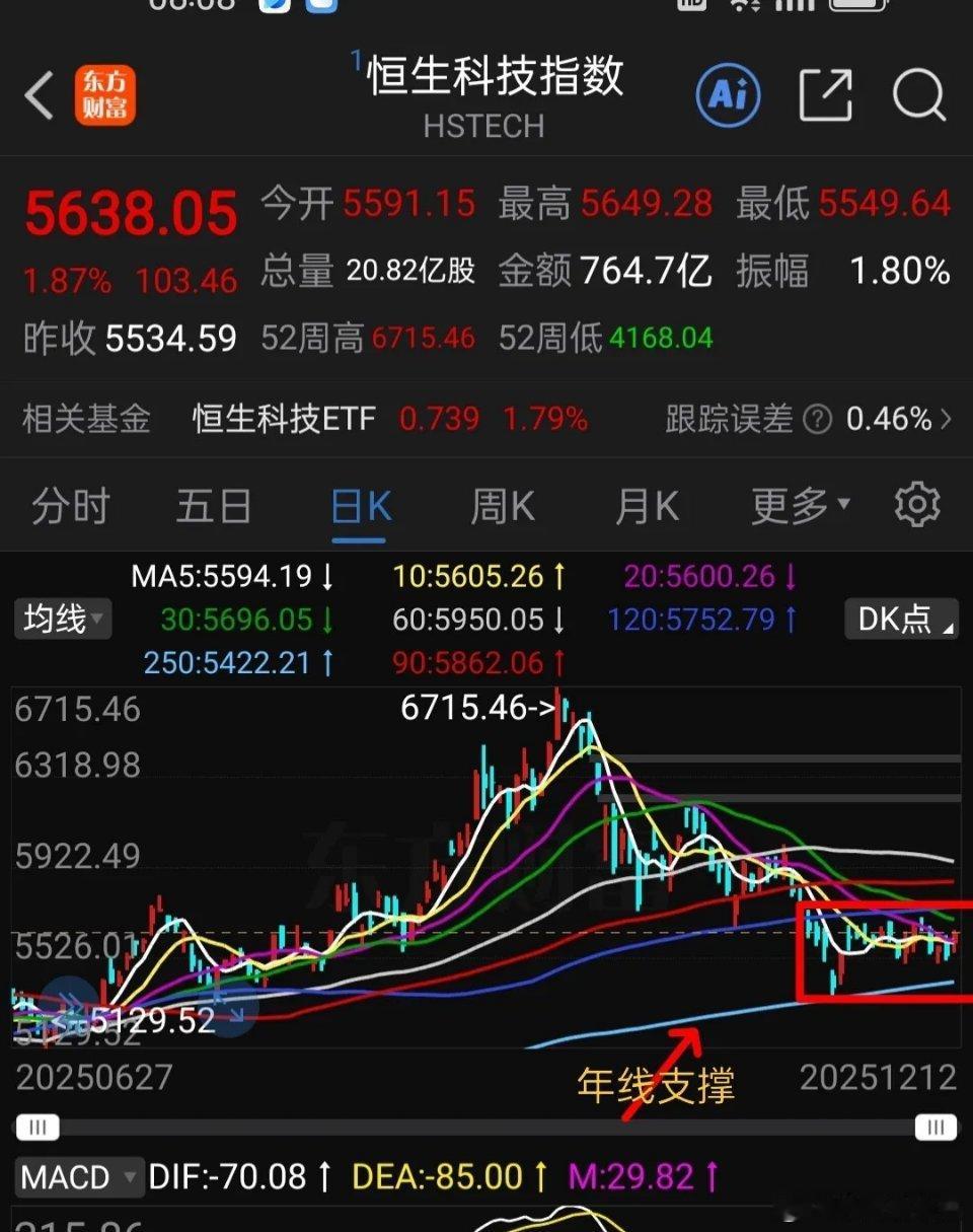 周末聊基金-- 恒生icon科技下周有可能考验年线支撑。恒生科技前面已经多次分析,它近期不会有大的行情,因为2025年恒生科技指数已经上涨了50%,今年涨幅不算小了。接下来就是震荡整理筑底,为明年上涨腾出空间,打好基础。 下图是恒生科技日线走势,左图是放大的走势,很明显它近期是横盘震荡行情,在一个小箱体内运行已经3个多星期,后面有可能继续走箱体震荡行情。 从它历史走势规律来看,每次从高点下跌回调,都震荡筑底好长时间,等60日线降下降,然后再突破60日线,沿着60日线上升,启动新一轮行情。目前看,距离上方60日均线还比较远,所以回调整理远没有结束。下周初跟随美股周五大跌,再次考验下方年线支撑是大概率。 右下图是恒生科技指数拉长走势,长期看目前还是运行在一个大的上升通道中,目前在上升通道下沿附近,估计在通道中下部位置还要震荡整理一段时间,可逢跌慢慢低吸布局来年行情。 以上观点仅供参考不构成投资依据,行情随时都会发生改变。点赞转发关注投资理财不迷路。