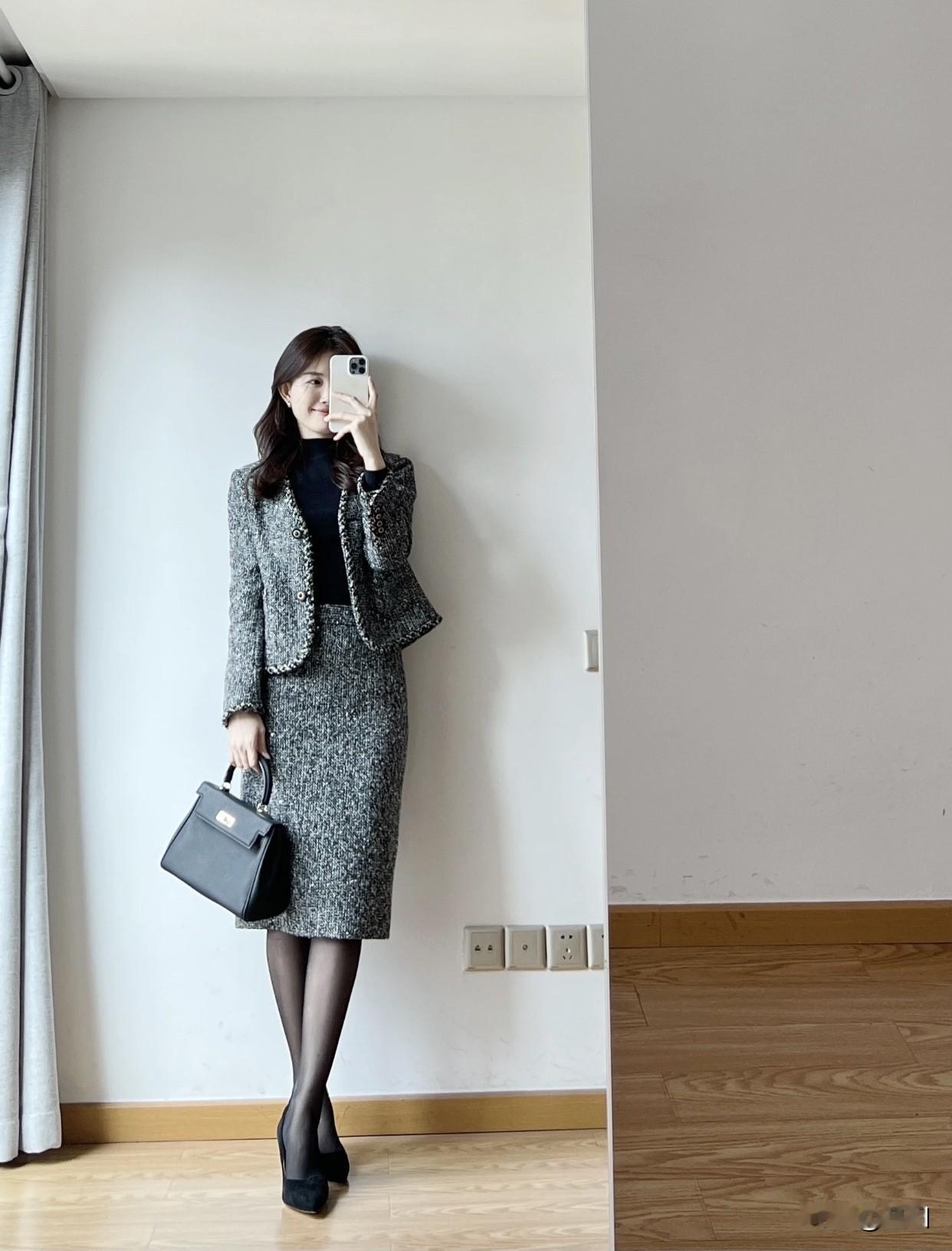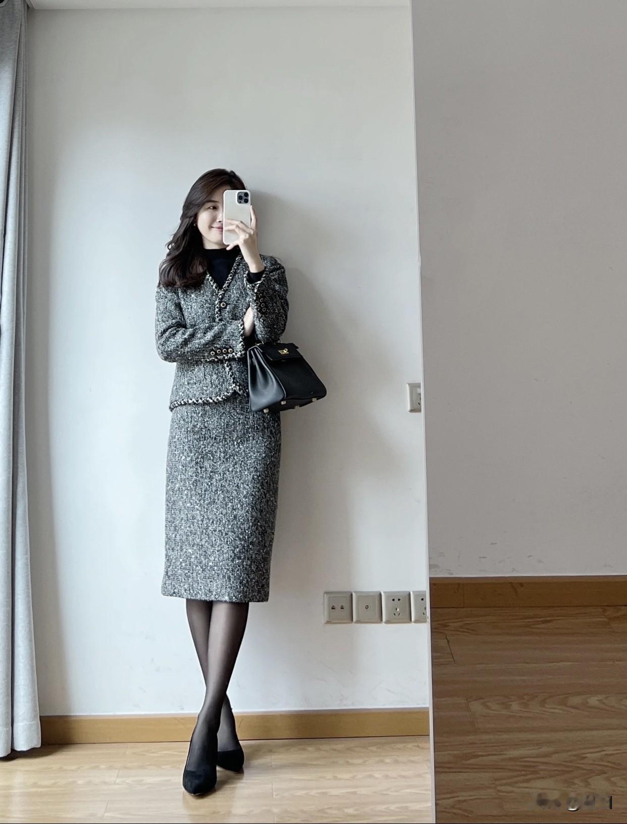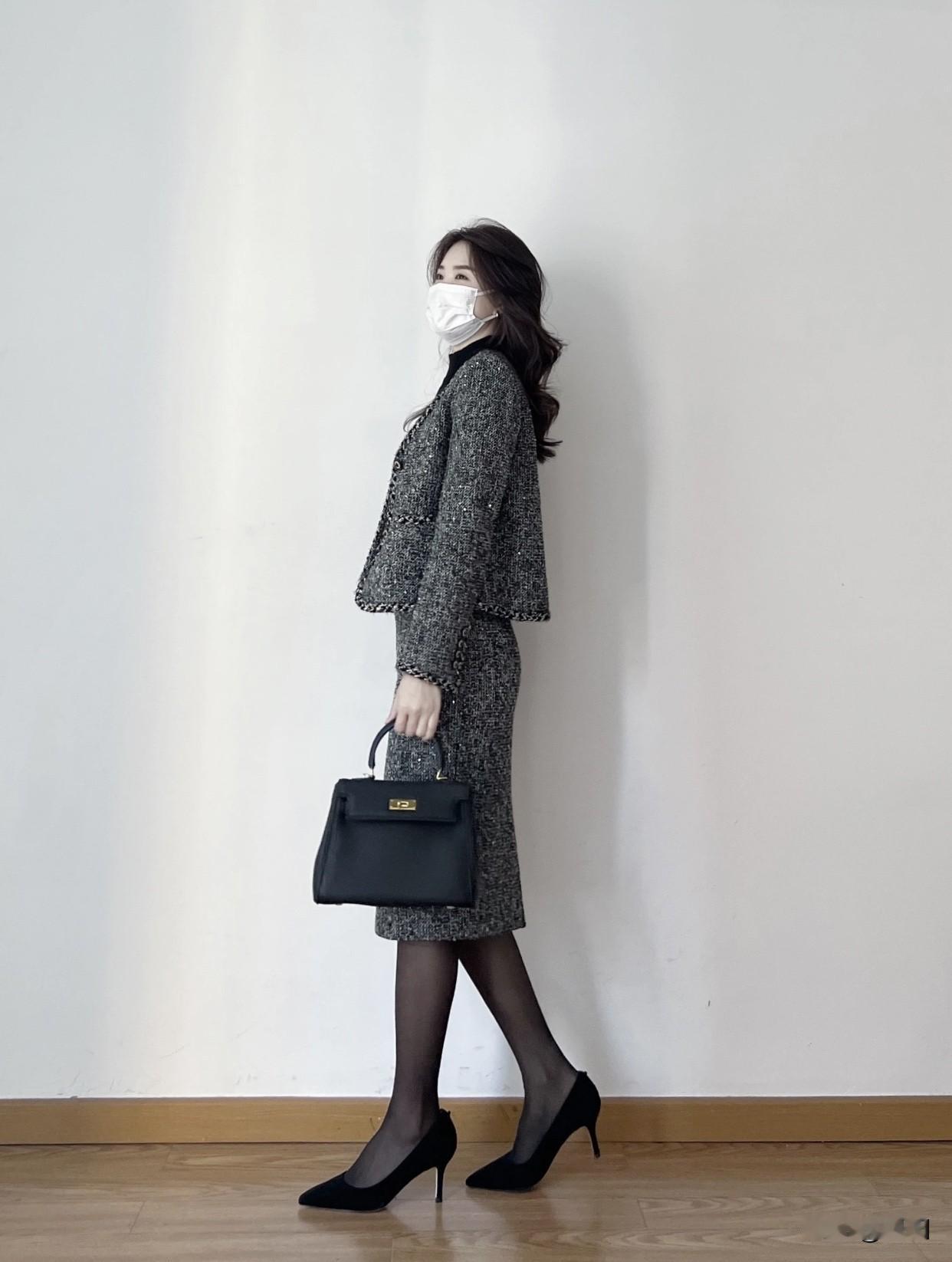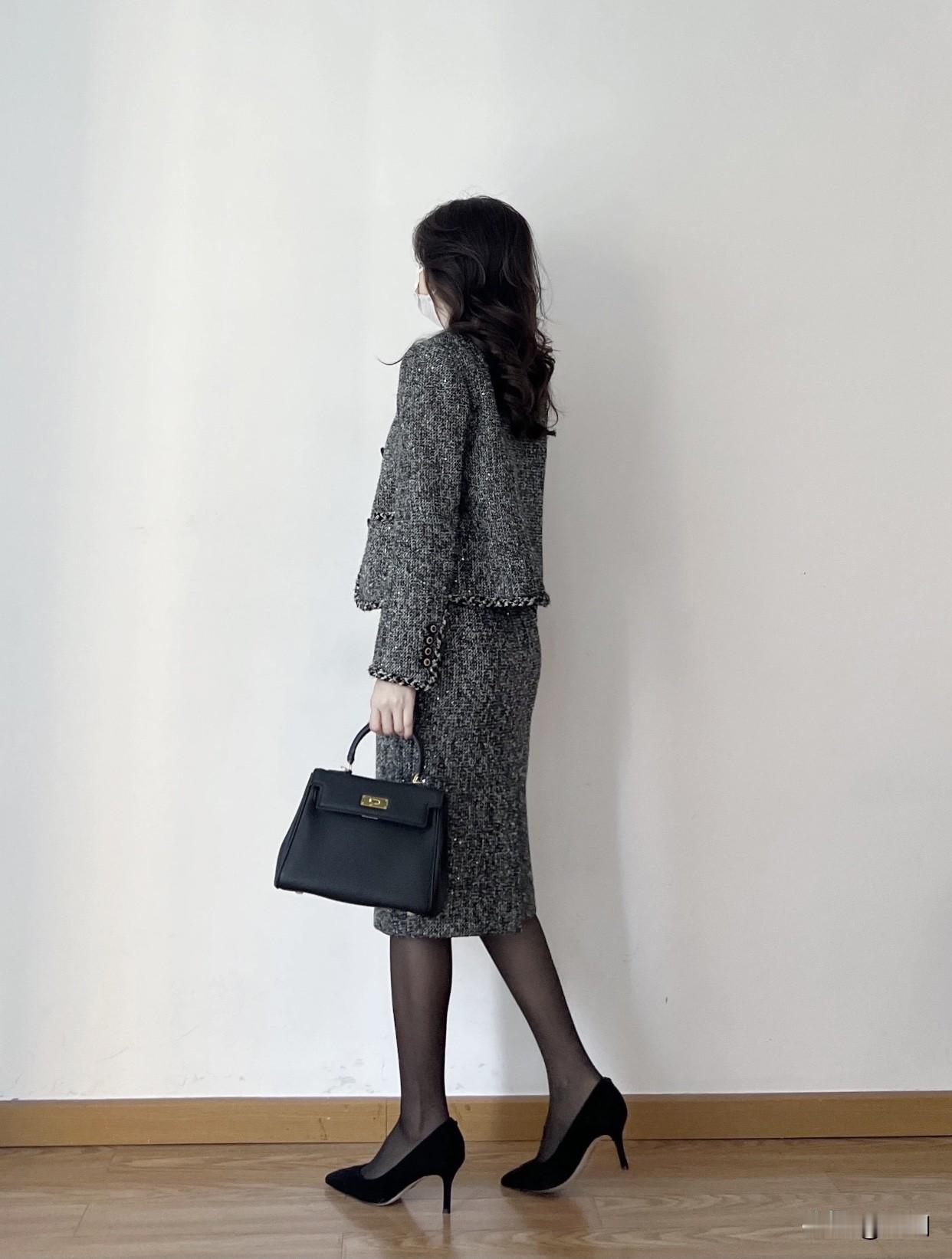 上班通勤应该怎么穿才有气质?优雅穿搭指南:灰色格纹连衣裙搭配黑色高跟鞋,简约而不失时尚感。