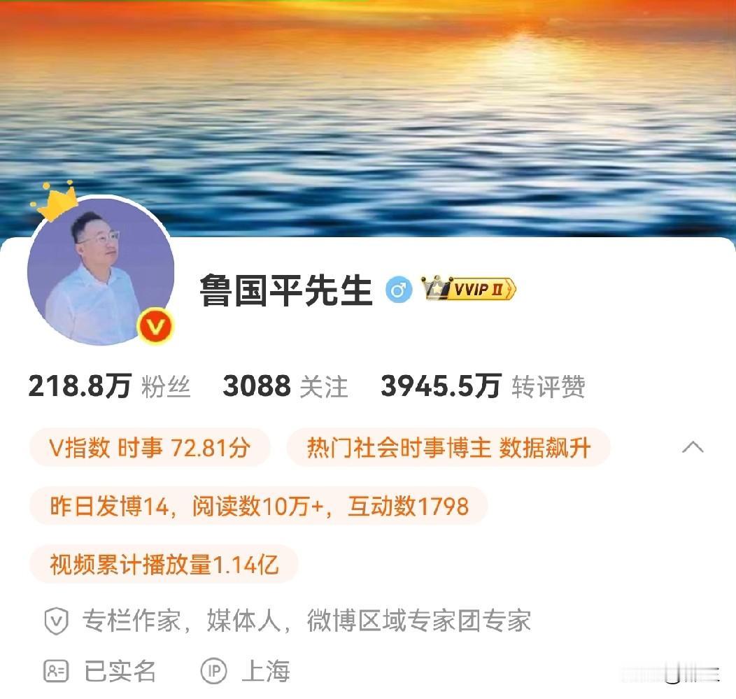 微博真的是抄袭成灾,能不能管管? 这个叫“鲁国平先生”的微博名,在微博有很多粉丝,但是微博内容全是抄袭搬运的,我的作品几乎全部被他搬运过去,几百万粉丝,也算是一个“大V”了,感情全是这样抄袭搬运别人的内容得来的,还“作家”,真的是有辱作家两个字。