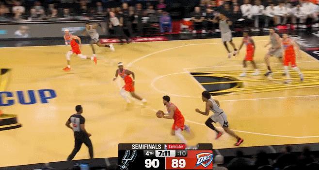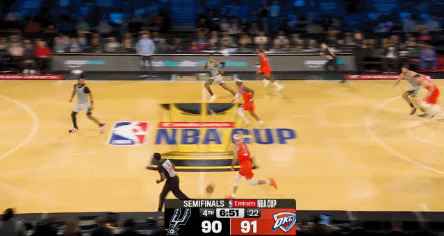 卡鲁索真好用啊! 今天NBA杯半决赛关键的第四节,双方比分一直胶着,这时候卡鲁索挺身而出,他先是在快攻反击中接队友传球迎着防守上演精彩隔扣;随后又完成抢断与亚历山大配合篮下强硬上篮命中;短短25秒连得4分,帮助球队反超了比分。 卡鲁索不愧是大心脏球员,关键时刻就是好用,攻防两端都有积极的作用。