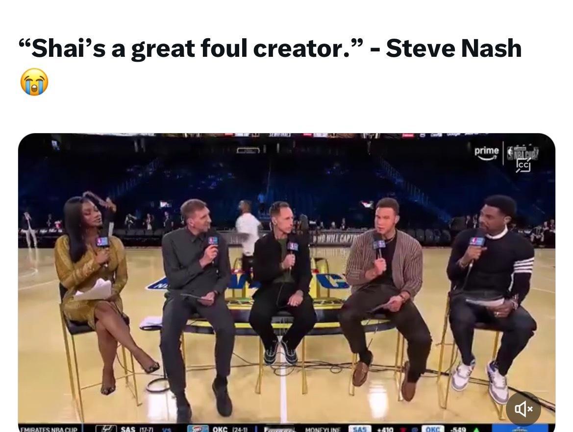 纳什:“SGA很会骗犯规,雷霆已经掌握规则,很会利用裁判。”😄😄NBA