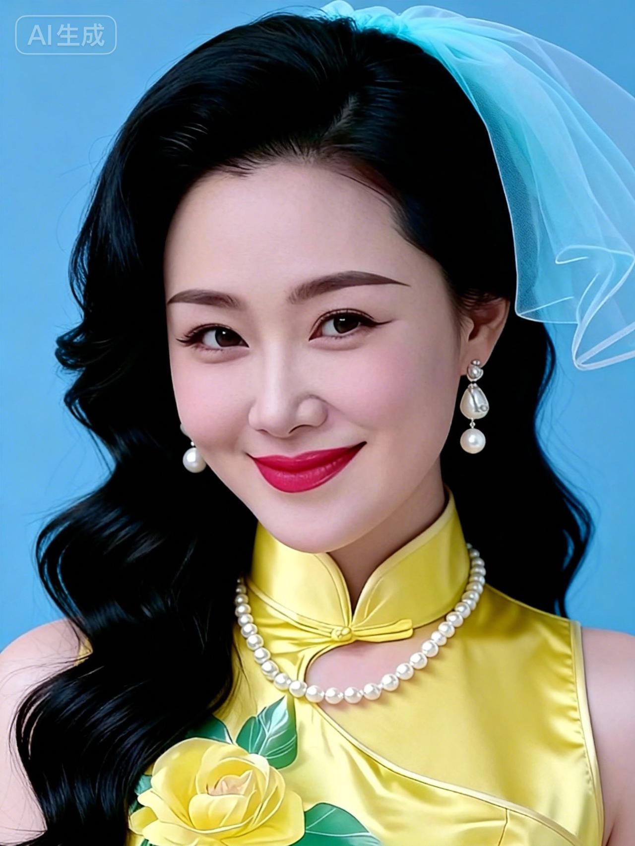 优雅复古风,珍珠项链与黄色旗袍的完美搭配,尽显东方韵味。