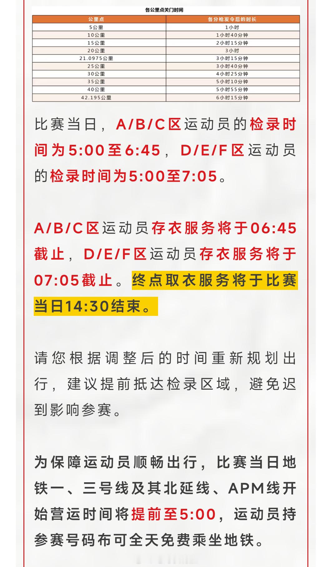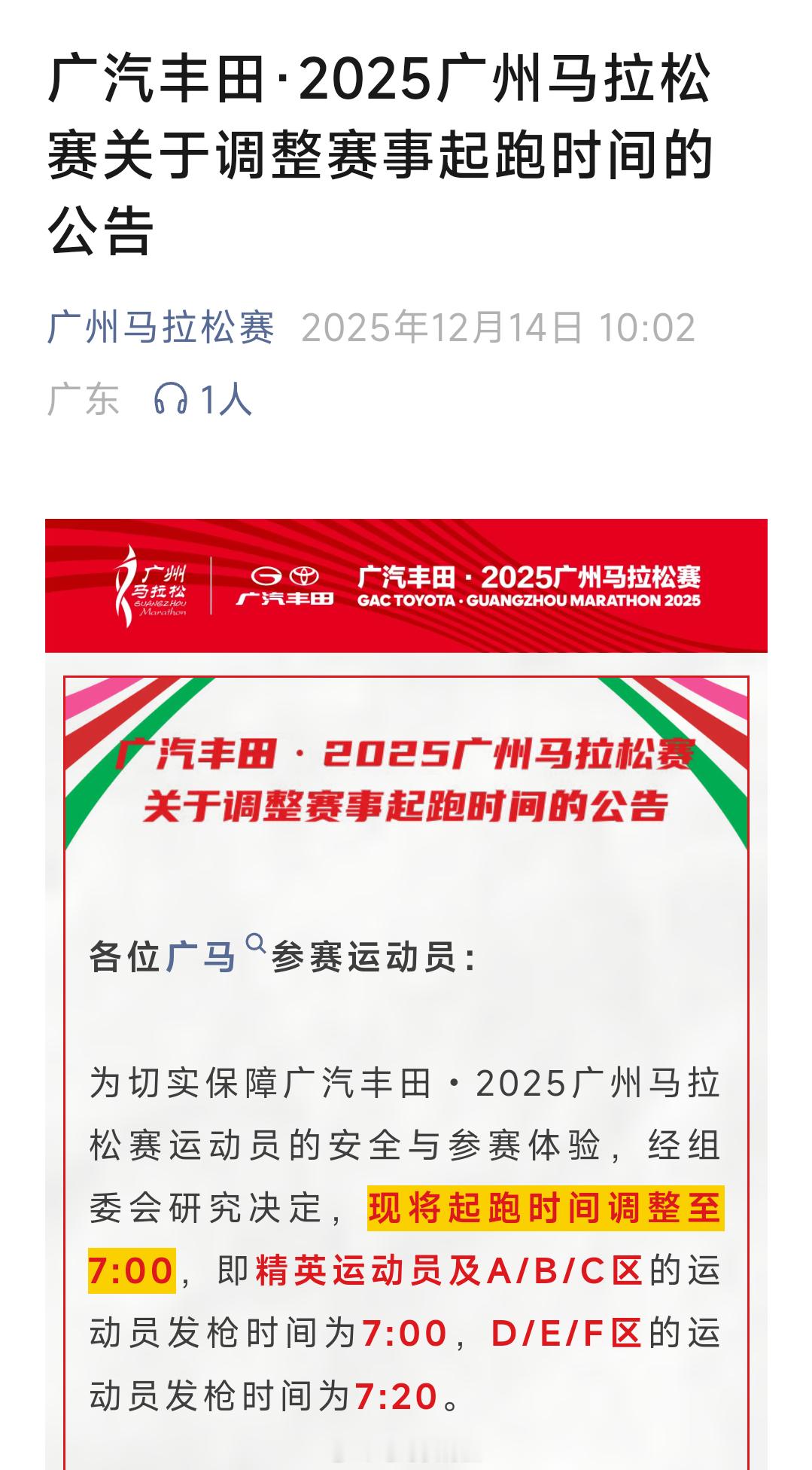 2025广州马拉松赛发布关于调整赛事起跑时间的公告。为应对高温天气,广马提前半小时的信息其实早就传开了。我更关心的公共交通配套也同期发布,惯例的一、三号线和APM线提前……意料之内的广州地铁合作模式,对不住在这两条线沿线的人就更加挑战了跑步广州马拉松2025广州马拉松赛事组织 广州