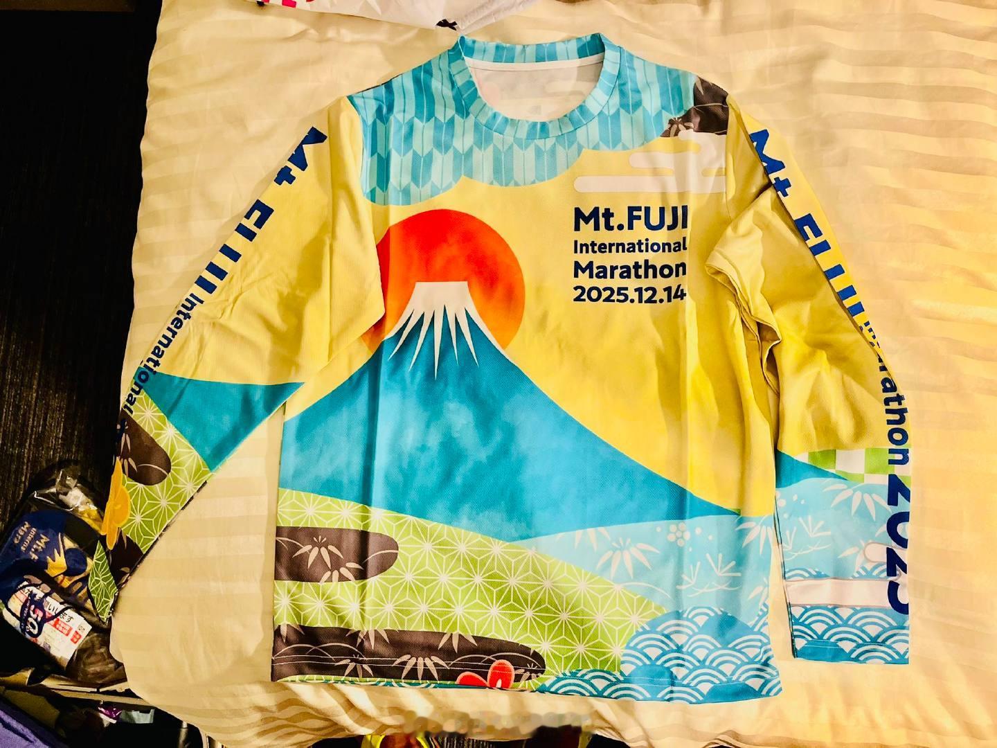 2025日本富士山马拉松的官方长袖T实物和设计稿。布料说是环保材料,未来可以交给 PIECLEX 公司回收。富士山马拉松 赛事组织 马拉松