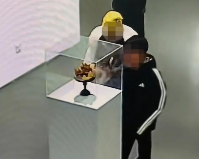 4斤黄金凤冠展出时被毁谁来赔当然熊孩子的监护人赔啊!男孩反复抱住展台柜子,并上