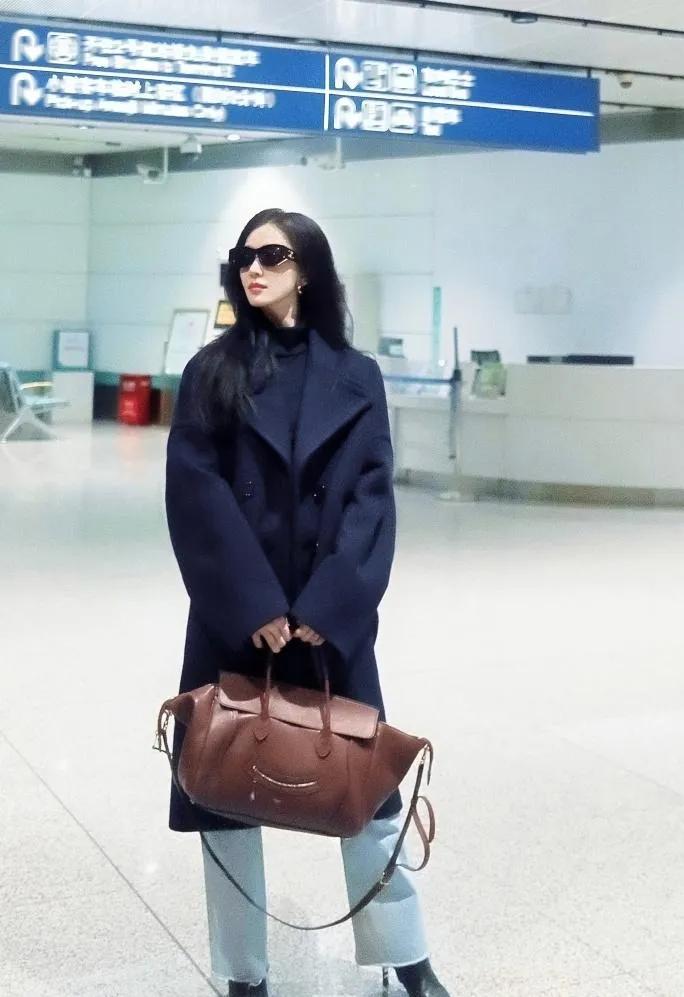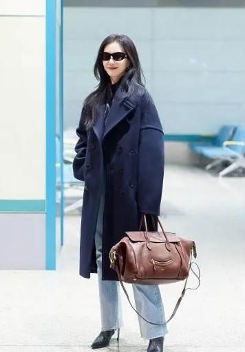 刘诗诗的机场私服,高级感刻在骨子里! 刘诗诗最新机场造型释出,一整个被美到✨ 藏蓝色廓形大衣气场拉满,利落的剪裁衬得身形挺拔又优雅,内搭黑色高领打底简约又显瘦,浅蓝牛仔裤中和了大衣的正式感,再配上棕色复古手拎包,冷暖色调碰撞出满满的质感,每一步都走出了清冷的豪门大小姐范儿~ 果然刘诗诗的私服品味,永远让人惊艳!