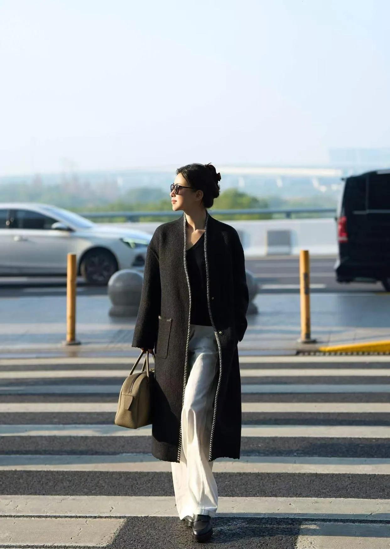 朱珠的机场私服也太会穿了吧! 朱珠最新机场造型曝光,一身搭配直接把高级感拉满💃 黑色镶边大衣简约又大气,内搭黑色V领上衣利落显瘦,下装配白色阔腿裤,经典黑白配碰撞出清爽层次感,脚踩乐福鞋更是慵懒又时髦,行走间满是松弛的气场~ 果然气质好的人,随便穿穿都这么洋气!
