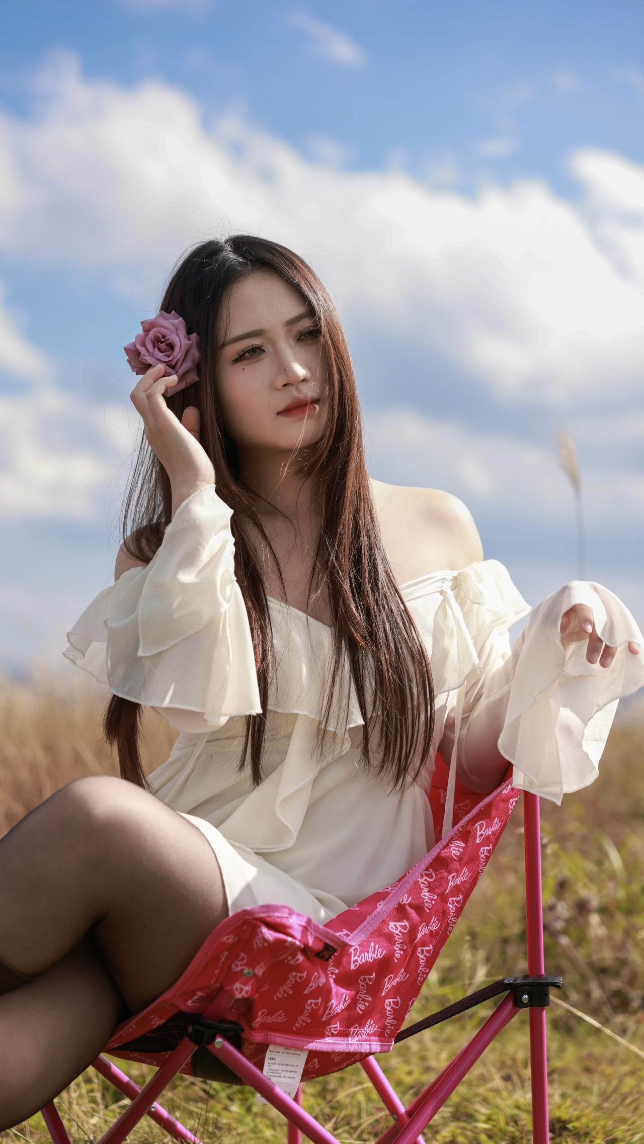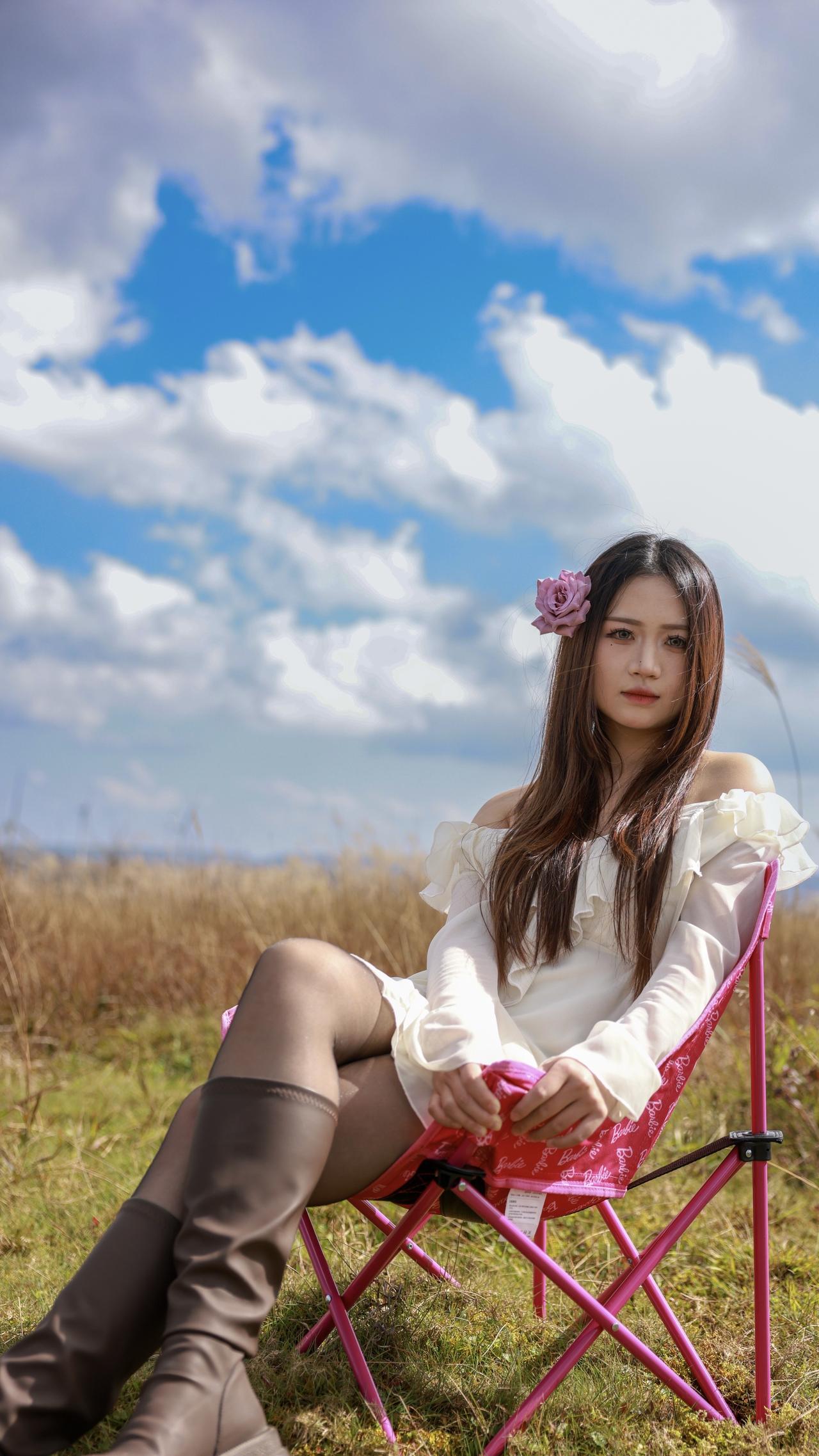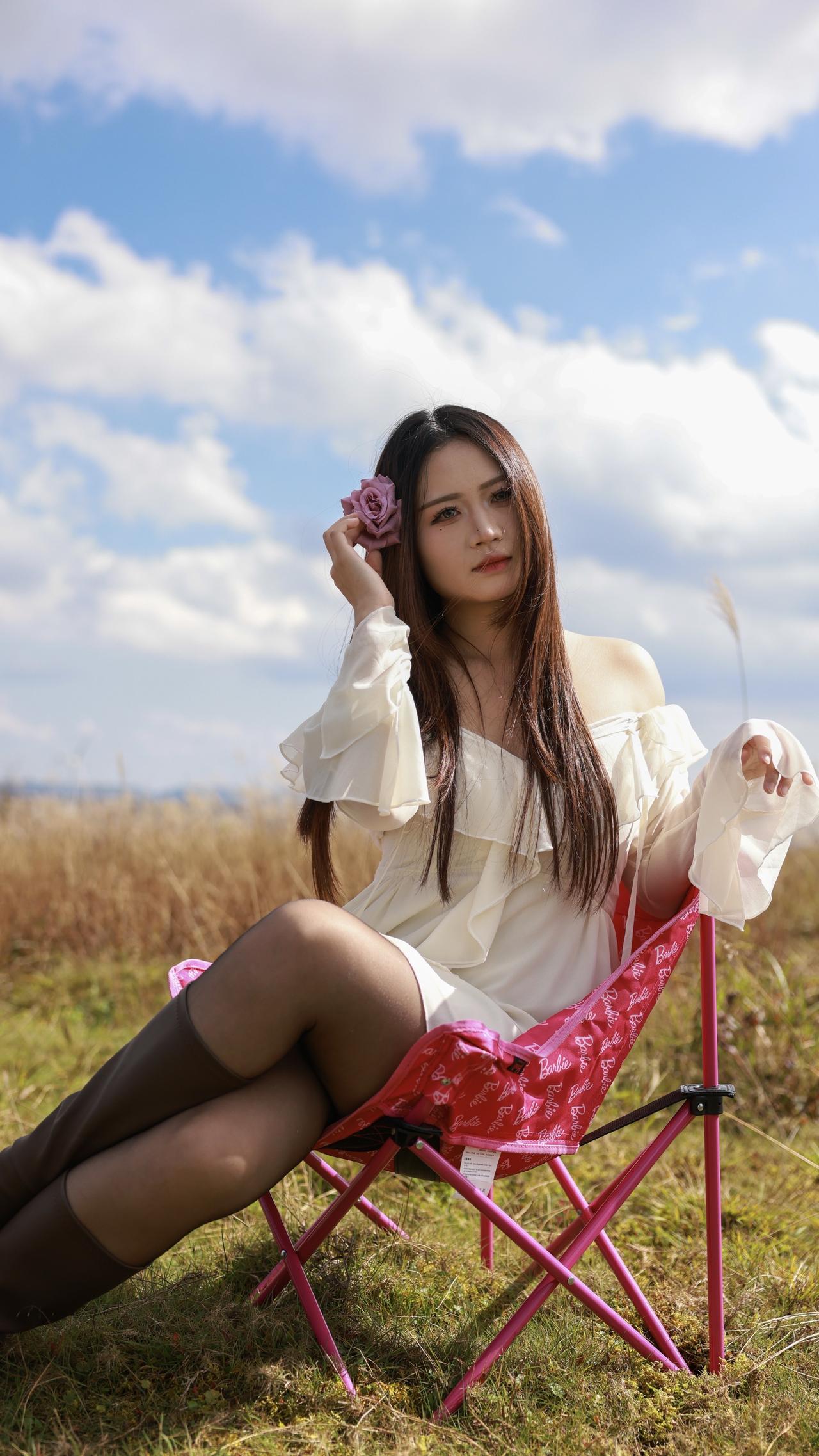 组图|秋风掠过草原,心事落在粉椅上。摄影 人像 拍照 美出高级感