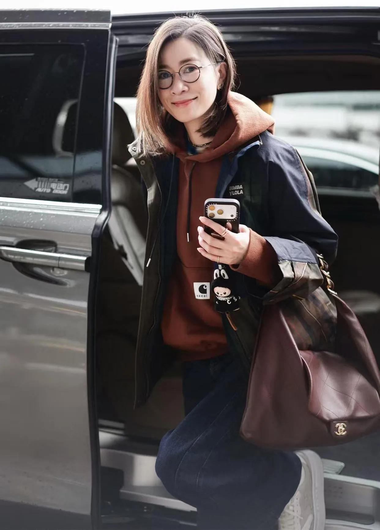 佘诗曼的穿搭品味也太绝了! 佘诗曼最新机场造型太圈粉啦💫 工装拼接外套搭配焦糖色连帽卫衣,休闲中带着酷飒感,下装配深蓝色牛仔裤,简约又利落,整套穿搭把时髦、减龄和高级感完美融合,50+的状态依旧超能打! 果然会穿的人,随便搭都这么有范儿~