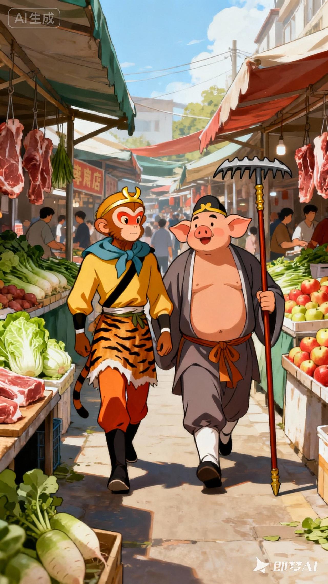 孙悟空和猪八戒逛菜市场,猜猜他们俩会买什么?