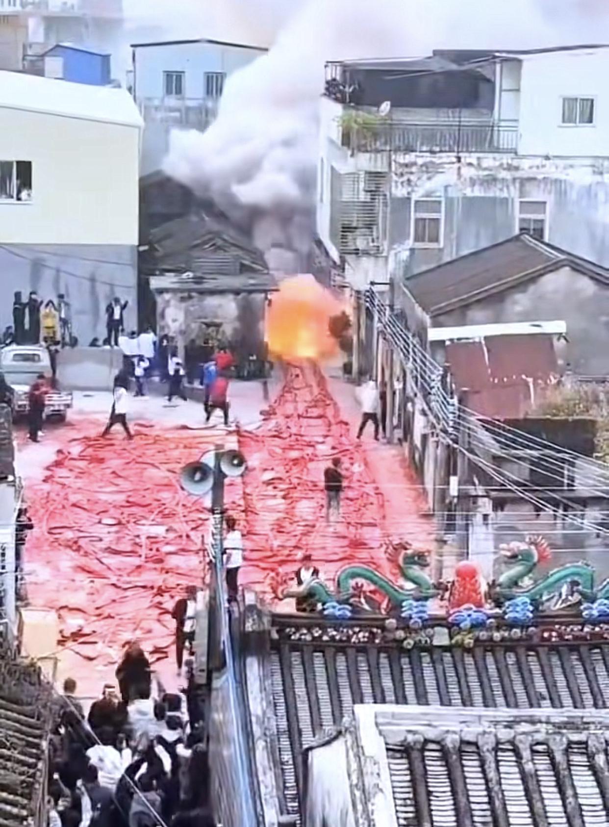 从村头放到村中间!在村民眼里,一切的传统形式,在没有鞭炮的声音,都是徒劳无味。 但这种放鞭炮的庆祝方式,我还是第一次见,广东一些农村过年燃放鞭炮的特别多,尤其是山区,不分昼夜的放。而且爆炸声特别大,好像没有人管,村民也更乐意。 任何事情都是两面性,燃放鞭炮会发生火灾或伤人事件,但到底对环境有无影响也只是个别专家下的结论,能造成多少空气污染,没有什么数据,全是凭专家们一说。 现在炊烟不见了,可雾霾天气比以前还多,这又如何解释?没有燃放过鞭炮的城里人,是体会不到鞭炮齐鸣的那种习俗滋味。